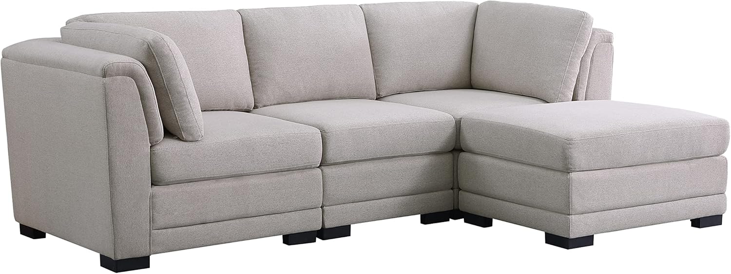 Kristin 96 Inch Light Gray Linen Fabric Reversible Sectional Sofa with Ottoman, includes Corner and Armless Chairs, Spacious Seating for Living Room