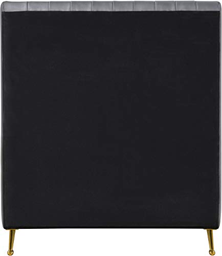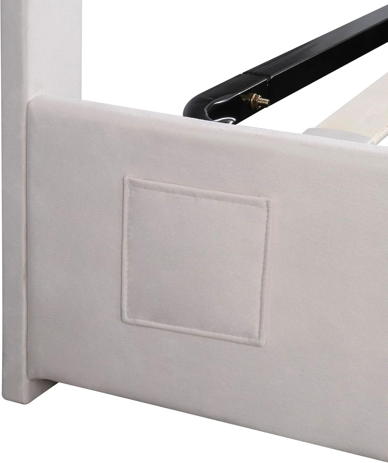 Meridian Furniture Zara Collection Modern | Contemporary Velvet Upholstered Bed with Deep Channel Tufting and Custom Gold Legs, Twin, Cream