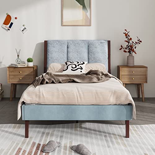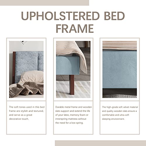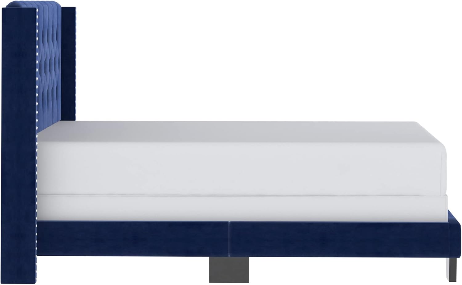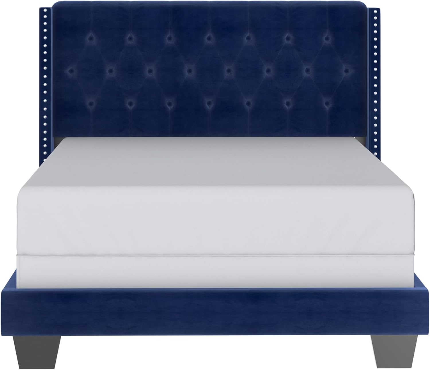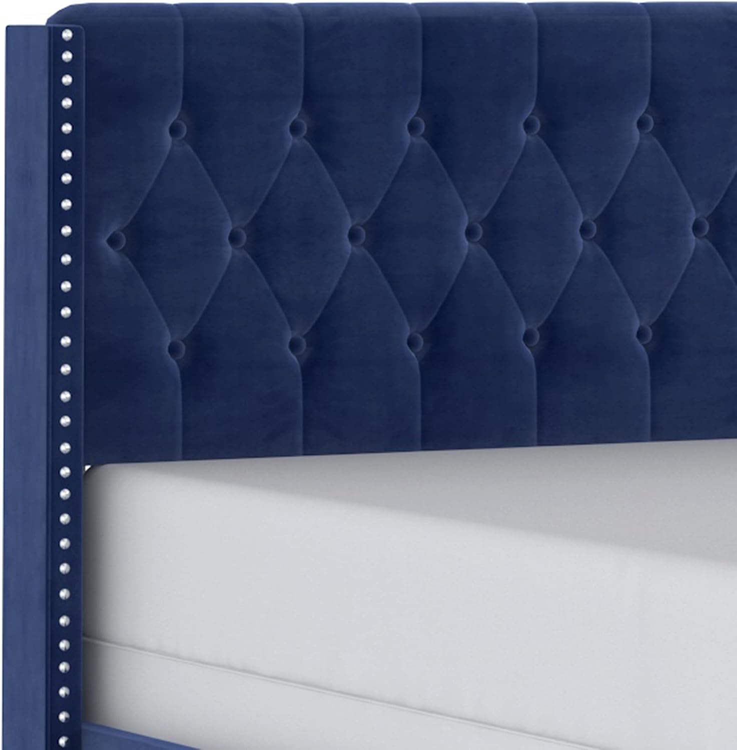 Adamis Modern Velvet Upholstered 54" Double Bed in Blue
