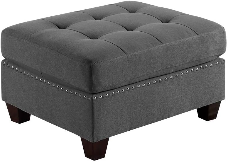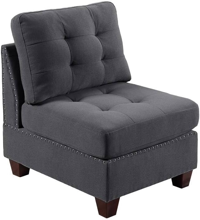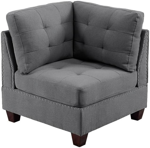 Modular Sectional 6pc Set Living Room Furniture U-Sectional Tufted Nail heads Couch Gray Linen Like Fabric 2X Corner Wedge 2X Armless Chairs and 2X Ottomans