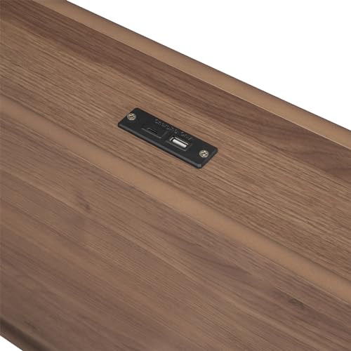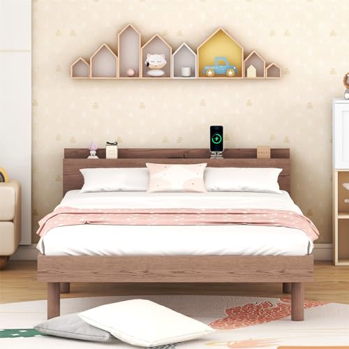 Double Bed Frame with Headboard and Sturdy Wooden Slats-with USB, No Spring Box Required, Easy to Assemble (Grey)