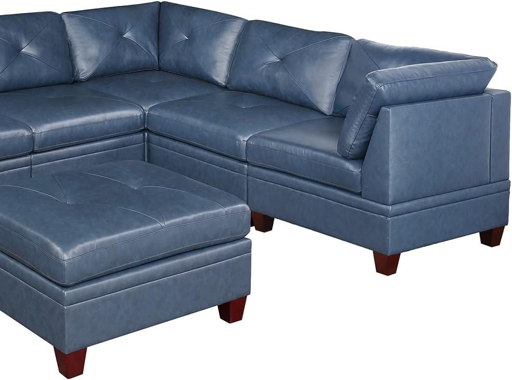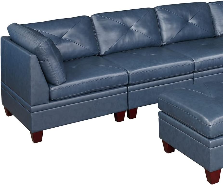 CHARMMA Genuine Leather Ink Blue Tufted 6pc Sectional Set 3X Corner Wedge 3X Armless Chair Sofa Couch,635
