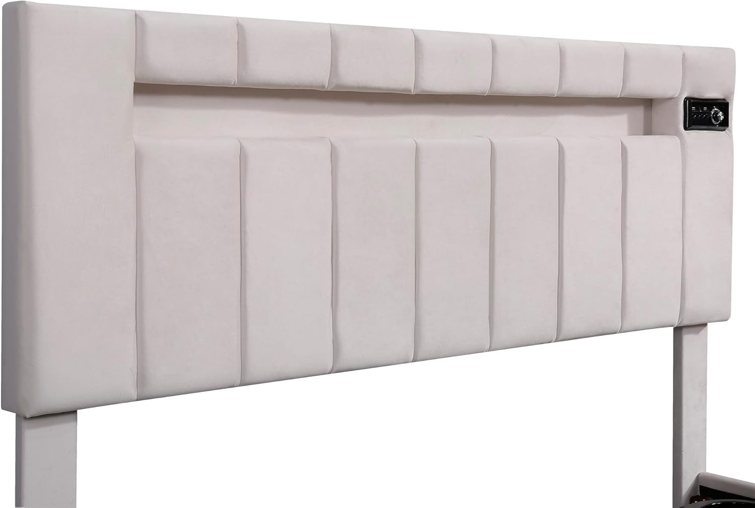 Queen Size Lift Up Storage Bed with LED light, Bluetooth Player and USB Charging, Hydraulic Storage System Design, Upholstered Versatile Bedframe,No Box Spring Needed, Beige