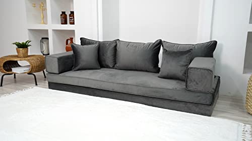 8" Thickness Double Couch Velvet Floor Seating, Dark Gray Sectional Sofa, Velvet Floor Sofa, Meditation Sofa, Toddler Floor Bed, Floor Pillow, Floor Couch (Sofa Full Set)