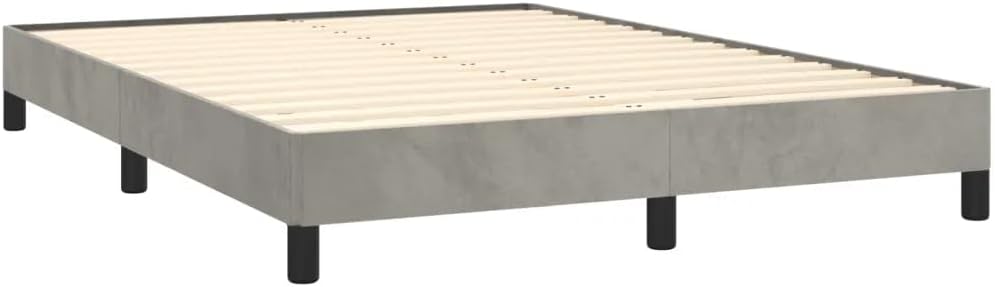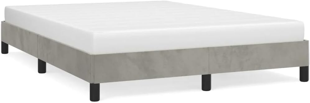 vidaXL Bed Frame - Full Velvet, Light Gray Double Bed Made of Plywood and Engineered Wood, Sized 76" x 55.1" x 9.8", Suitable for Mattress Size 53.9" x 74.8"