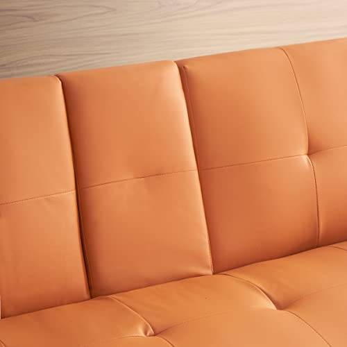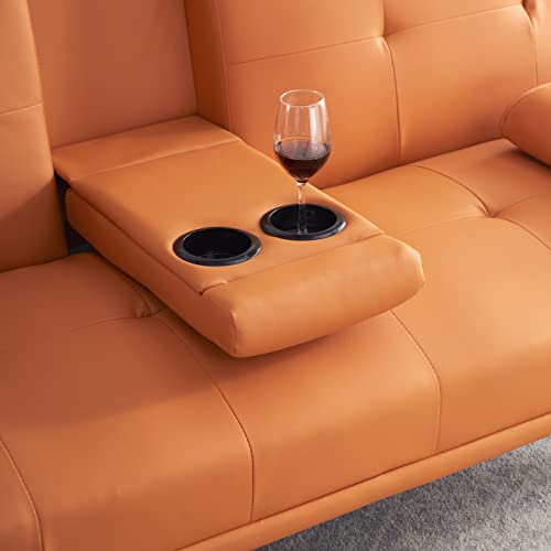 Futon Sofa Bed Modern Folding Set Faux Leather Convertible for Offices, Featuring a Coffee Table and Multi-Positional Comfort, Orange