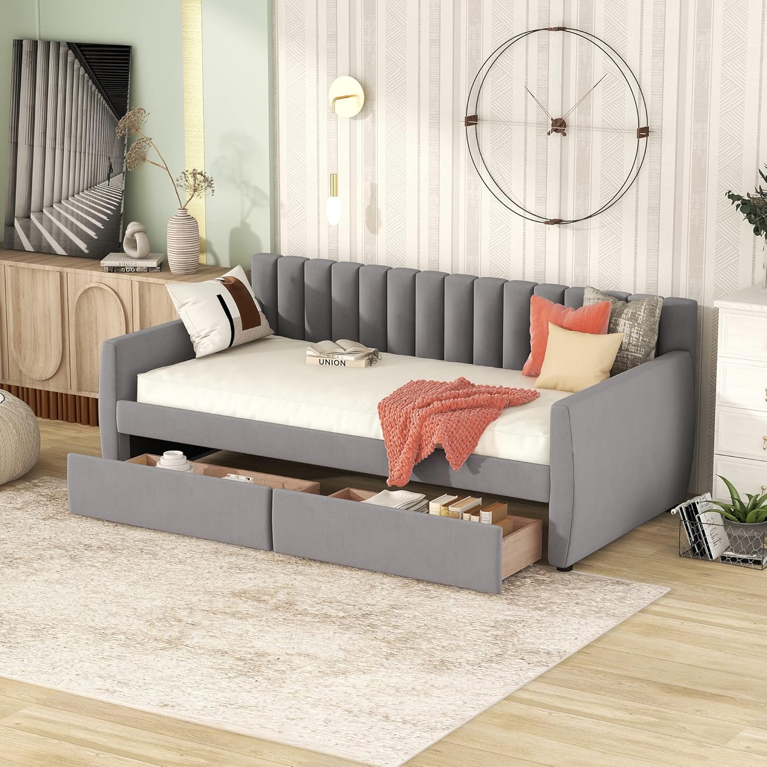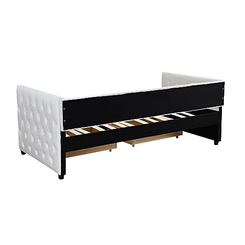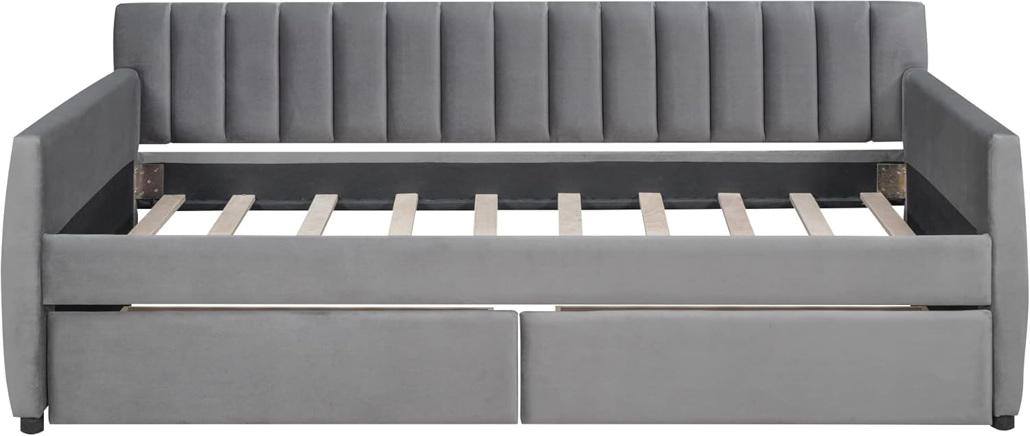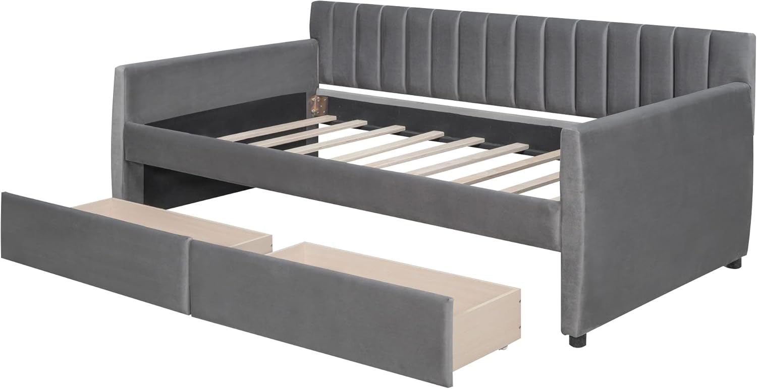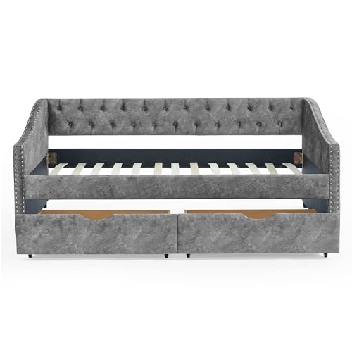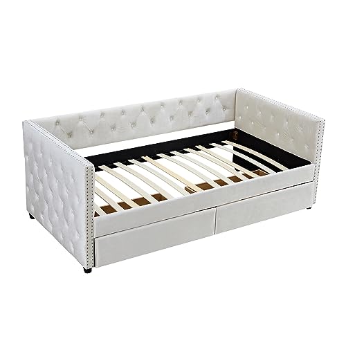 Daybed with Drawers, Modern Velvet Upholstered Twin Size Day Bed Button-Tufted Sofa Daybed Frame with Double Drawers, No Box Spring Needed, Furniture for Bedroom Living Room Guest Room