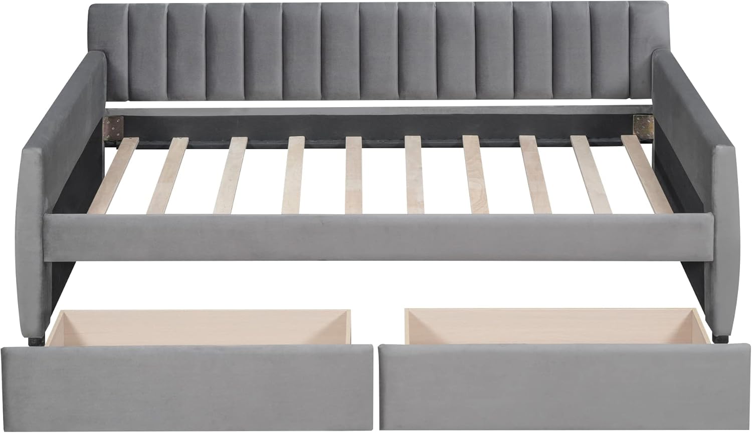 Premium Double Sofa Bed, Velvet Bed with 2 Drawers, Wooden slats Support, no Springs Required, Strong Leg headboard/Mattress Base, Multifunctional Furniture, Grey
