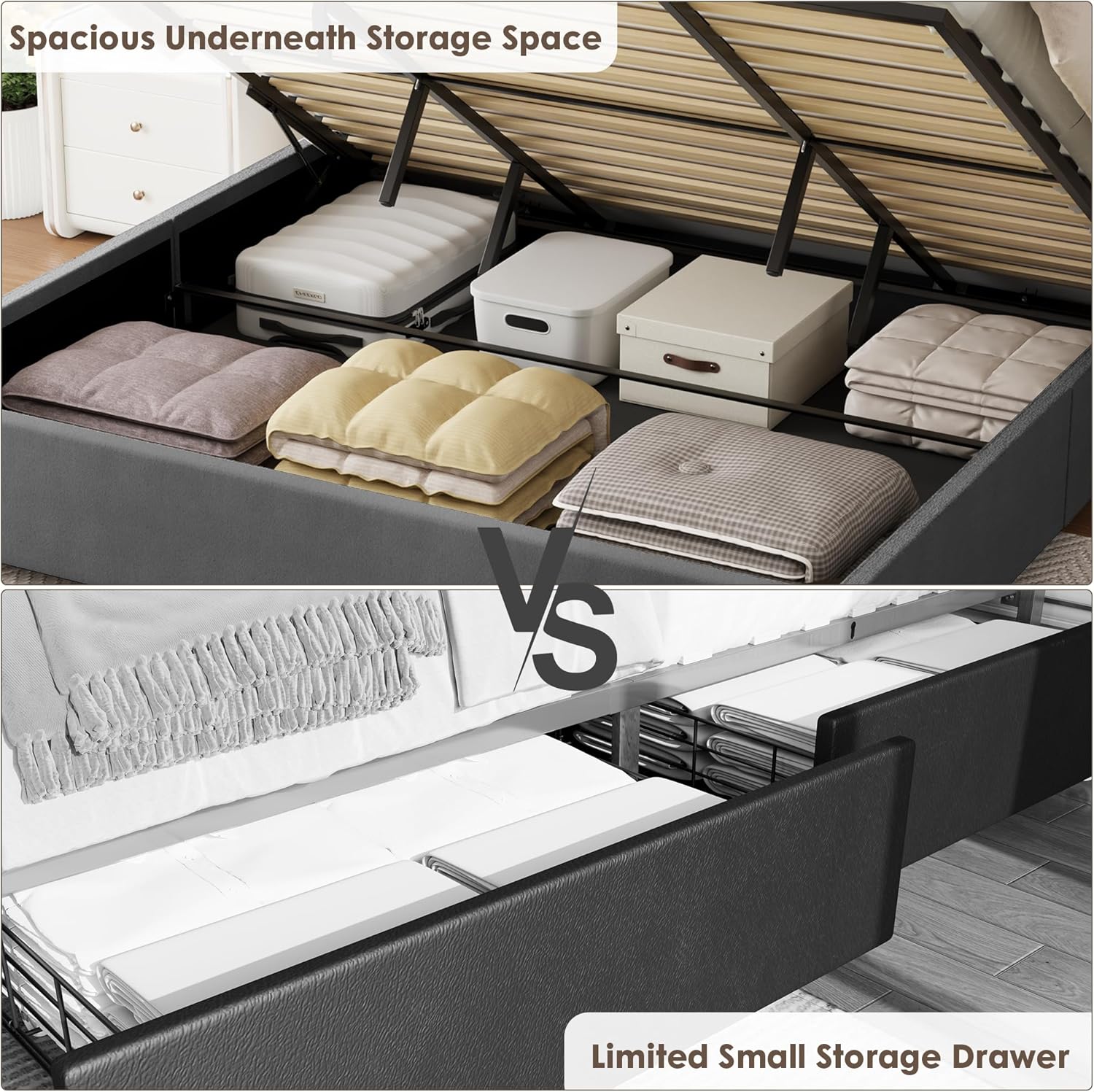 LIFT UP DOUBLE SIZE BED GRAY VELVET