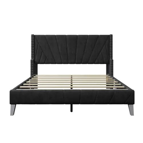 FeLeA Full/Queen Size upholstered Velvet Platform Bed with Tufted Rivet headboard, Adult and Adolescent Double beds,Twin Bed Frame, zq-122903