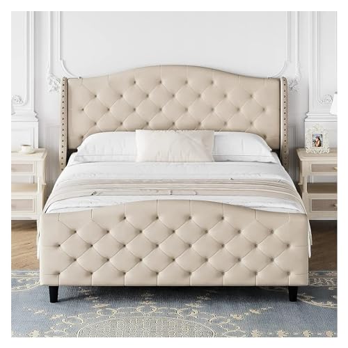King/Queen Size Velvet Plush Cushioned Platform Bed, Double Bed Compatible with Adults and Teenagers, Stylish and Elegant,beds