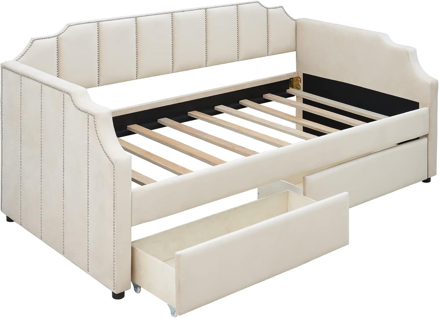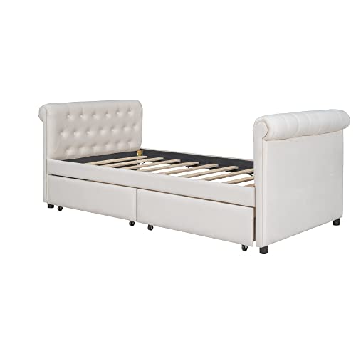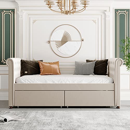 Daybed with Drawers, Modern Velvet Upholstered Twin Size Day Bed Velvet Sofa Daybed Frame with Double Drawers, No Box Spring Needed, Furniture for Bedroom Living Room Guest Room