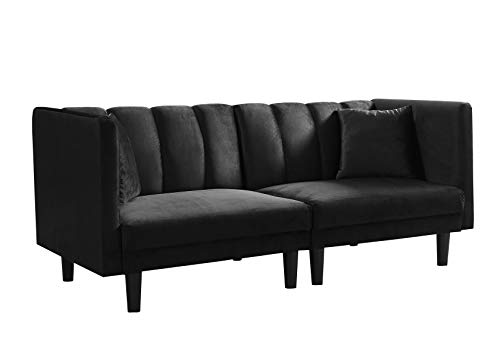 FANYE Modern Upholstered Futon Sofa Convertible Sleeper Couch Bed,Soft Loveseat & Sofabed for Home Office Apartment Small Space Living Room Napping, 64", Beige Velvet