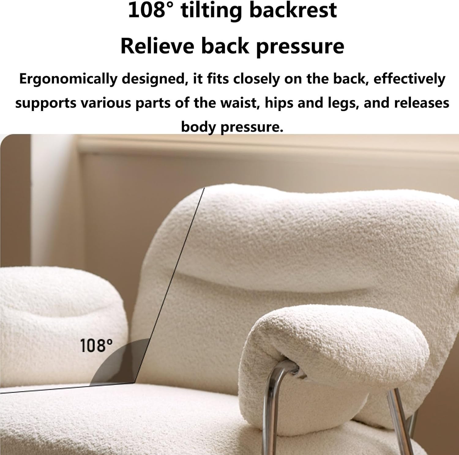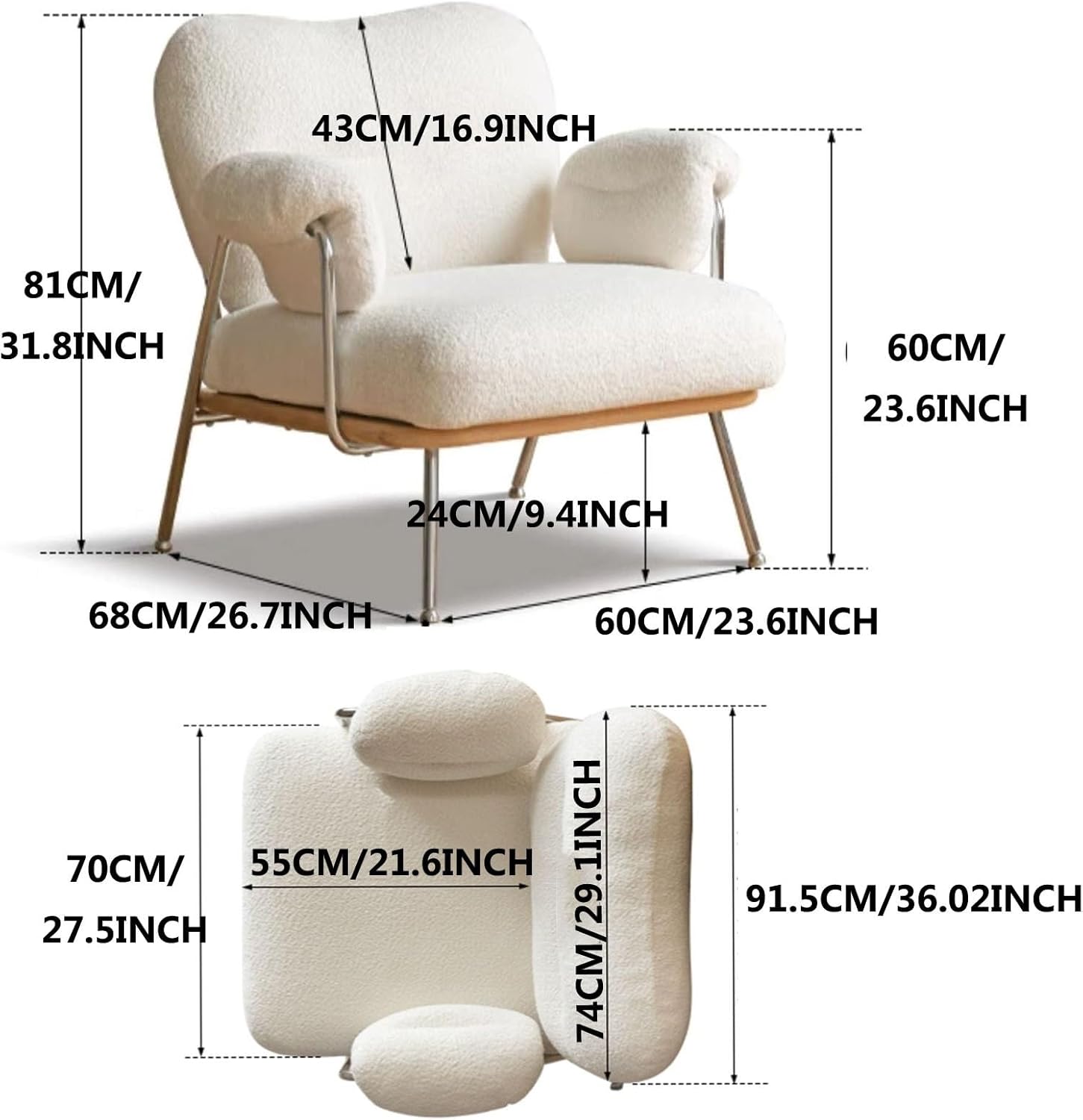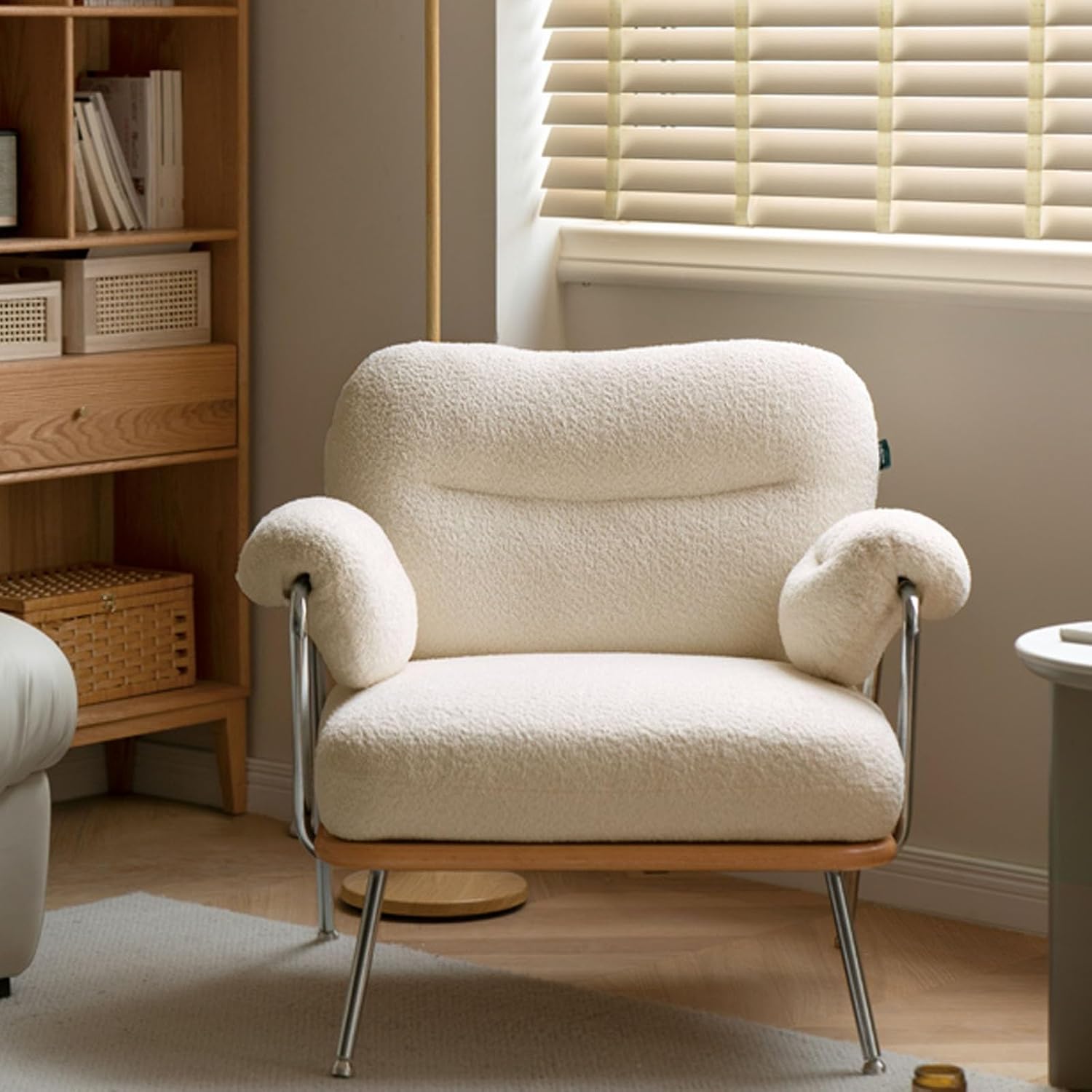 Mid-Century Modern Accent Chair Armchair, Soft Sherpa Sofa Lounge Chair Reading Chair with Metal Leg for Living Room Bedroom Office