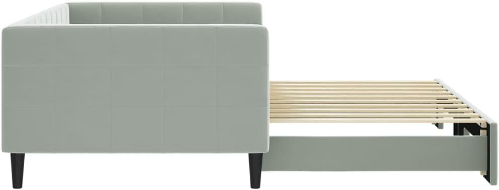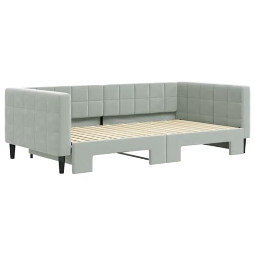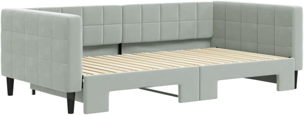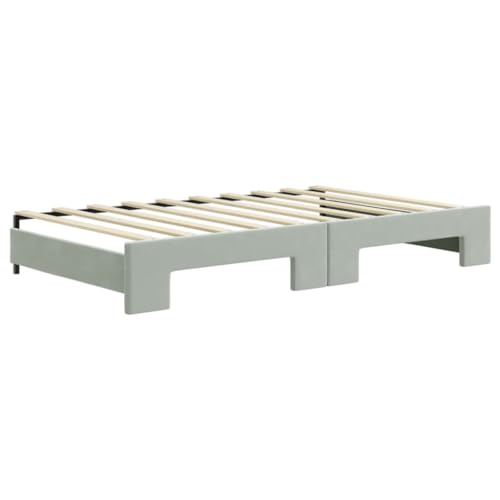 Daybed with Trundle Light Gray 39.4"x74.8" Velvet,Luxury 2in1 Daybed with Trundle: Convertible Sofa and Bed for SpaceConscious Living Bedroom Beds, Frames & Bases