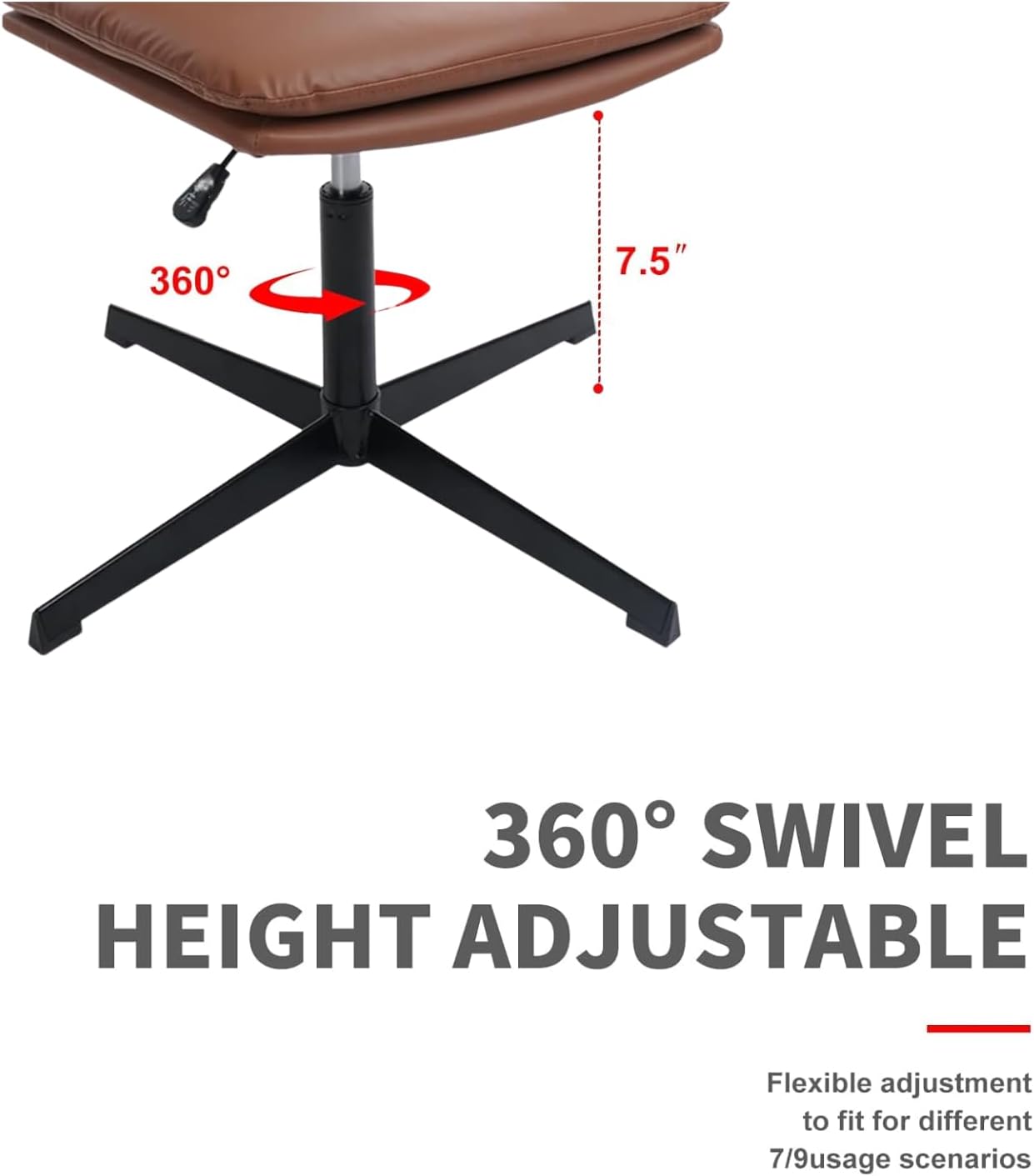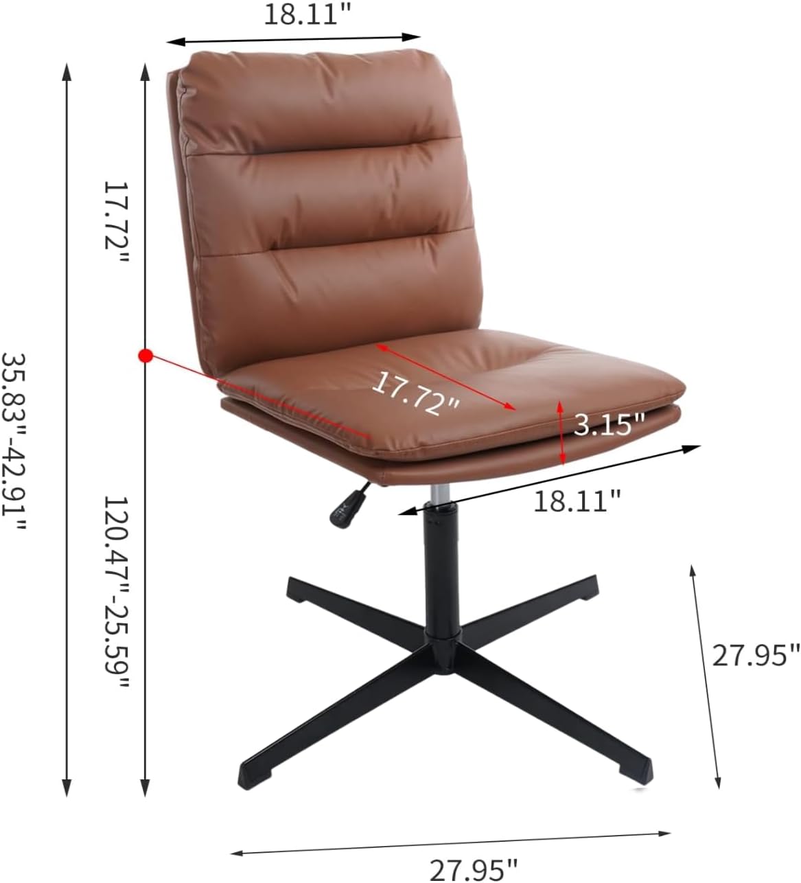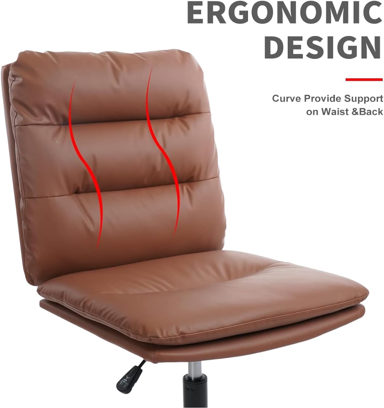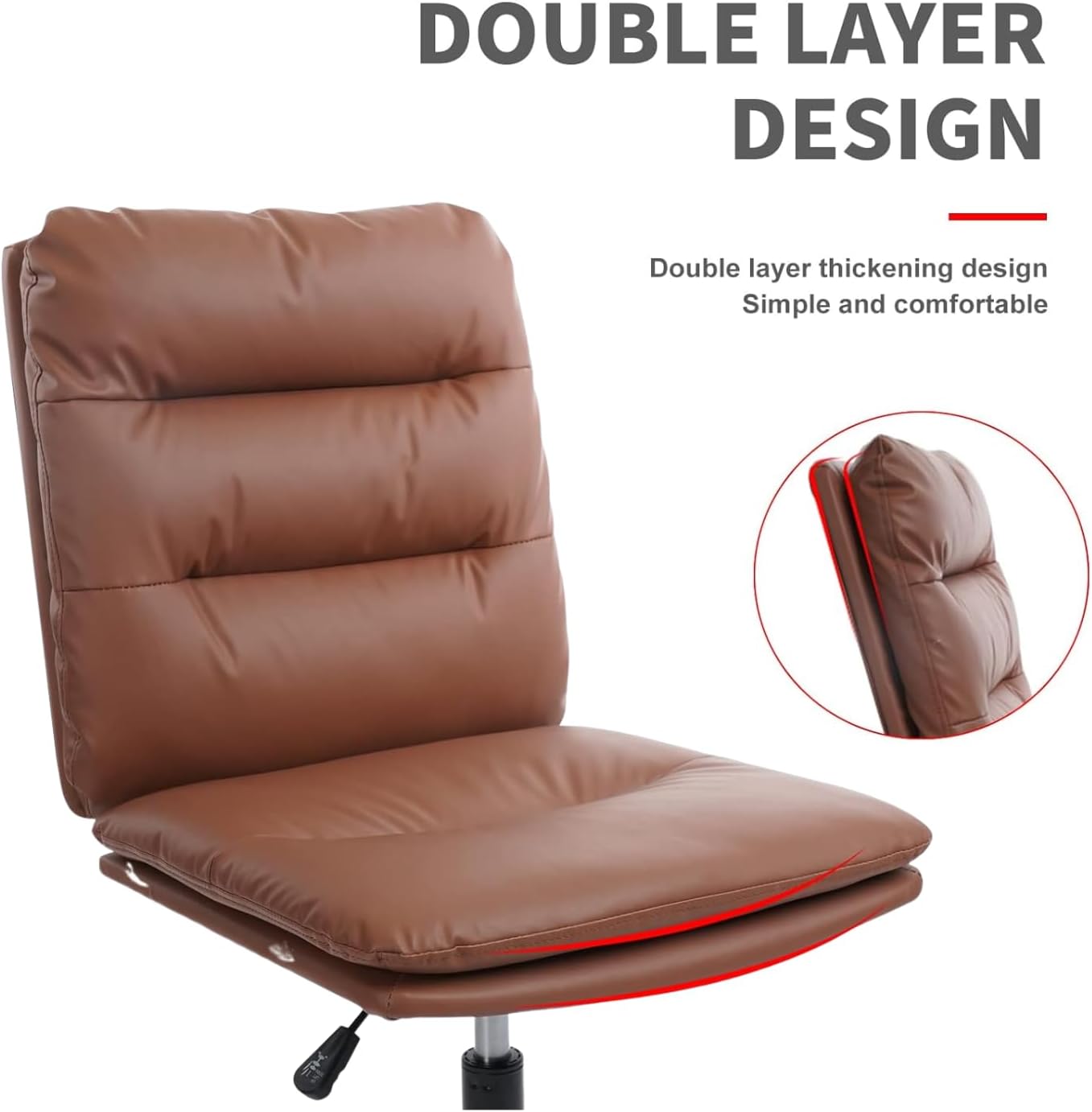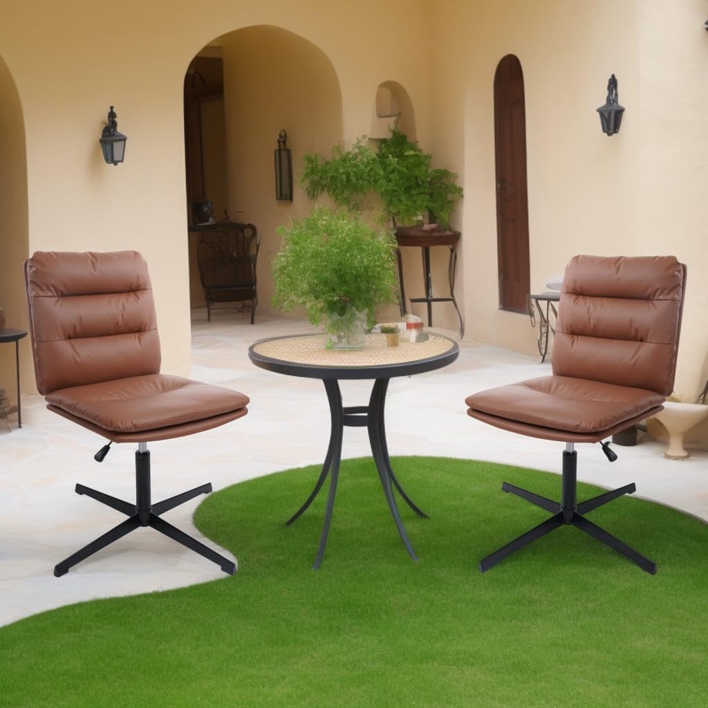 Armless Desk Chairs No Wheels,Cross Legged Ergonomic Office Chair Adjustable Swivel Faux Leather Thick Padded Computer Chair Wide Seat for Home Bedroom Office, Brown Set of 2