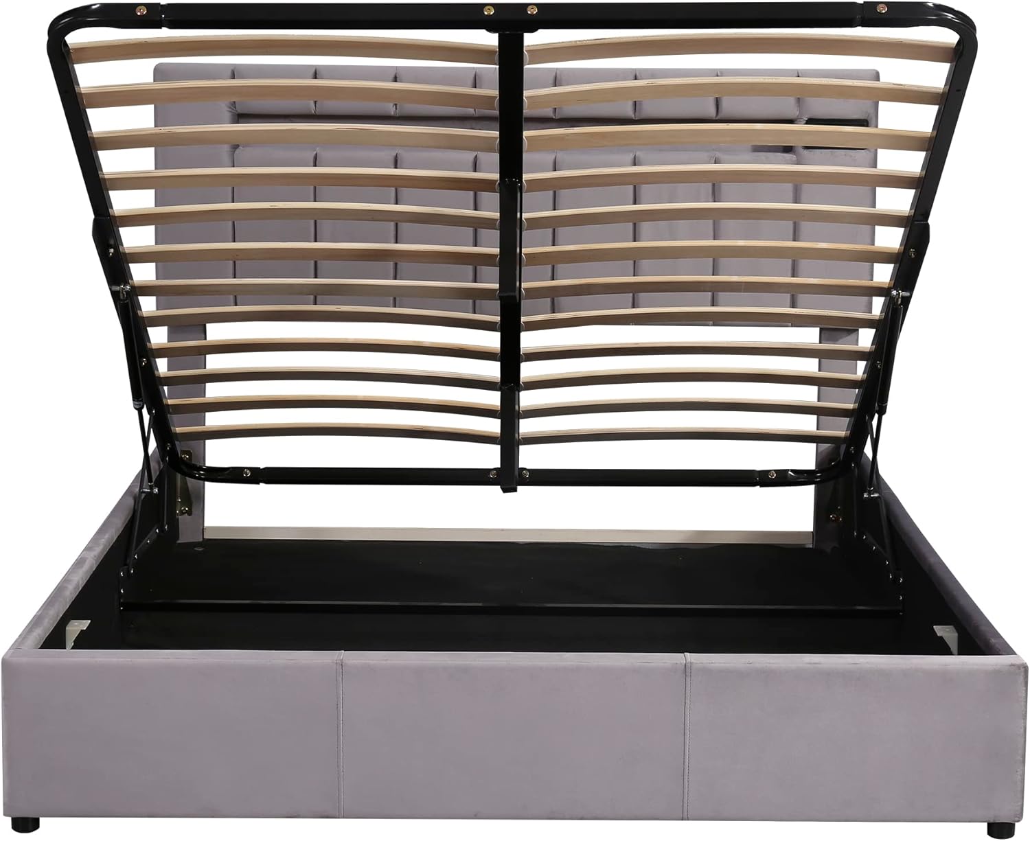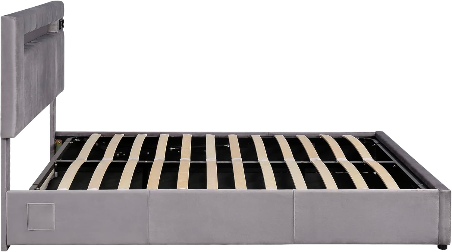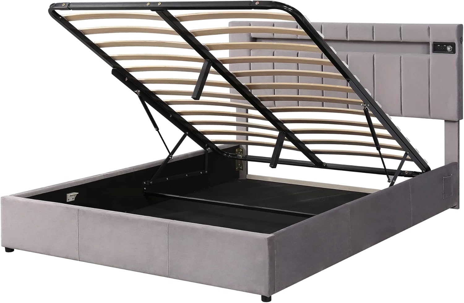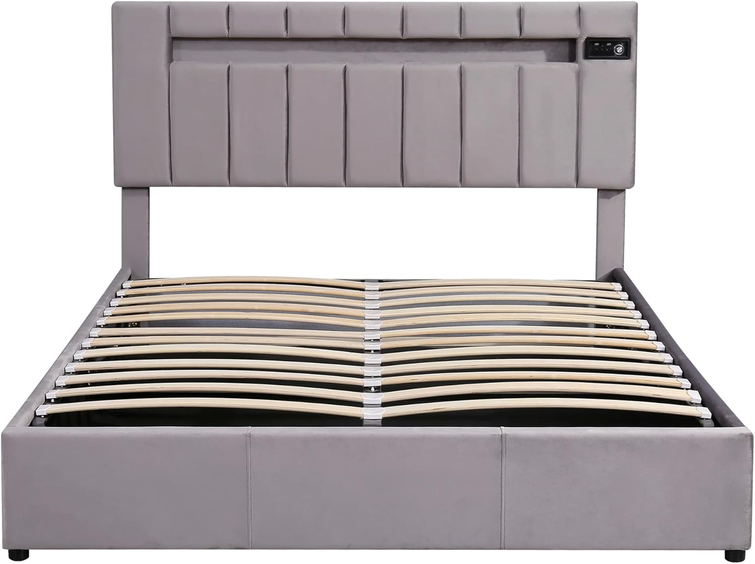 Queen Size Upholstered Bed with LED Light, Bluetooth Player, USB Charging, Hydraulic Storage, Gray Velvet Fabric, 81.10x60.24x43.11 in.