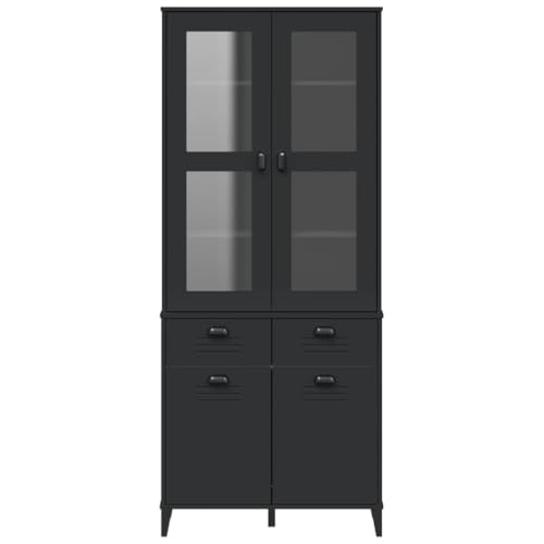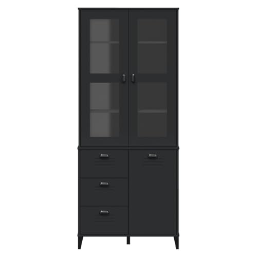 XAVIER Kitchen Cabinet、Sideboard、Living Room Cabinet、Console Cabinet Highboard VIKEN Black 31.5"x15.7"x74.8" Solid Wood Pine Suitable for Hallways, Entrances, Living Rooms, Offices