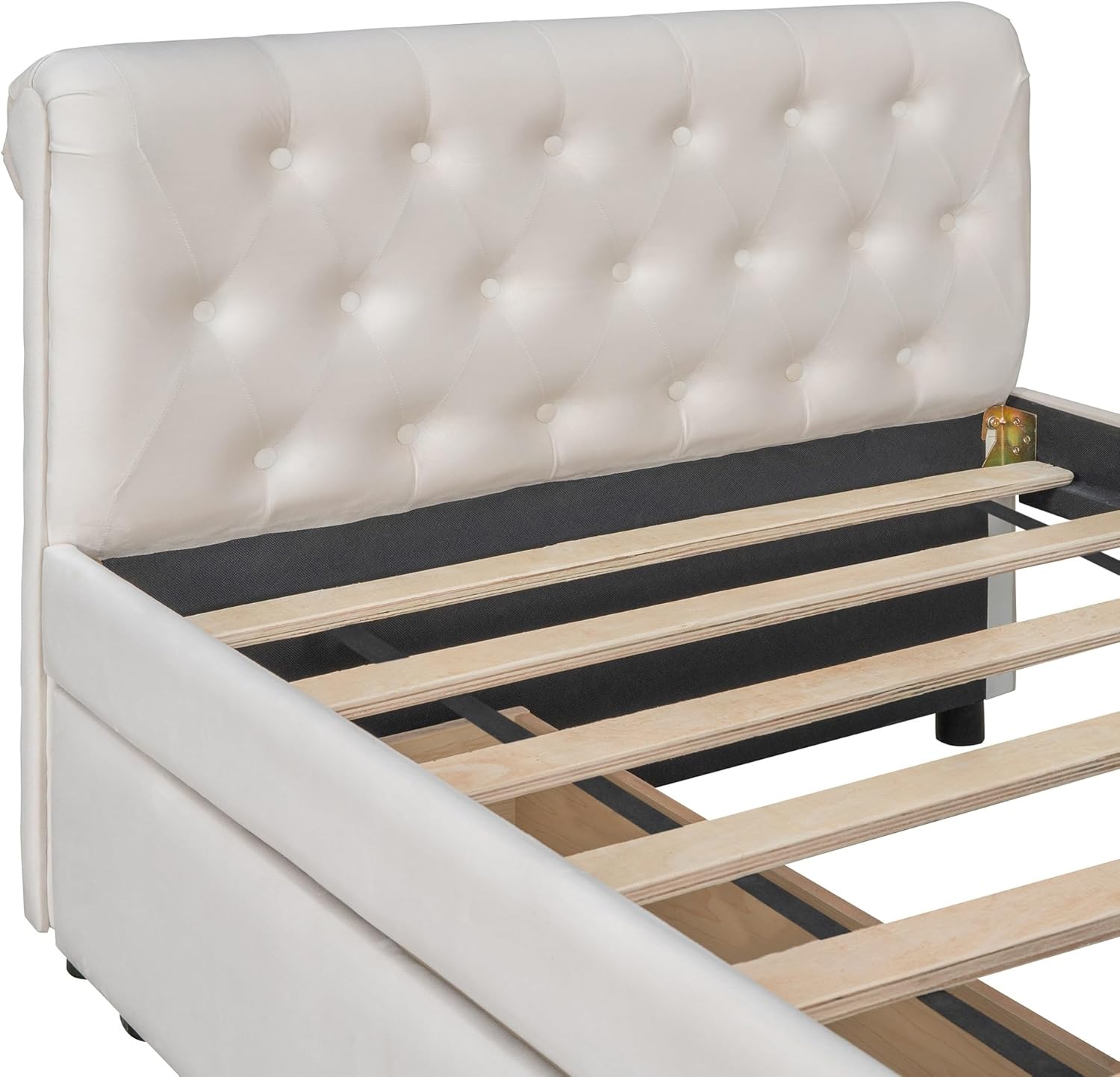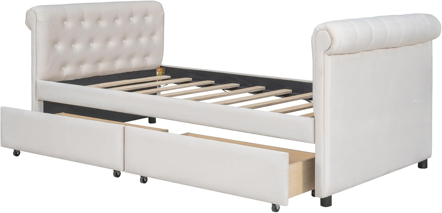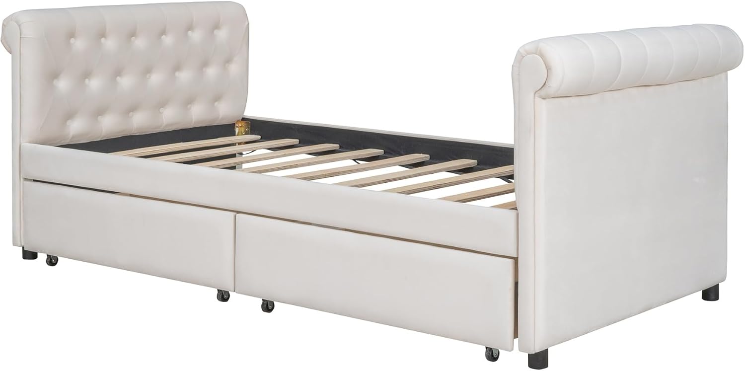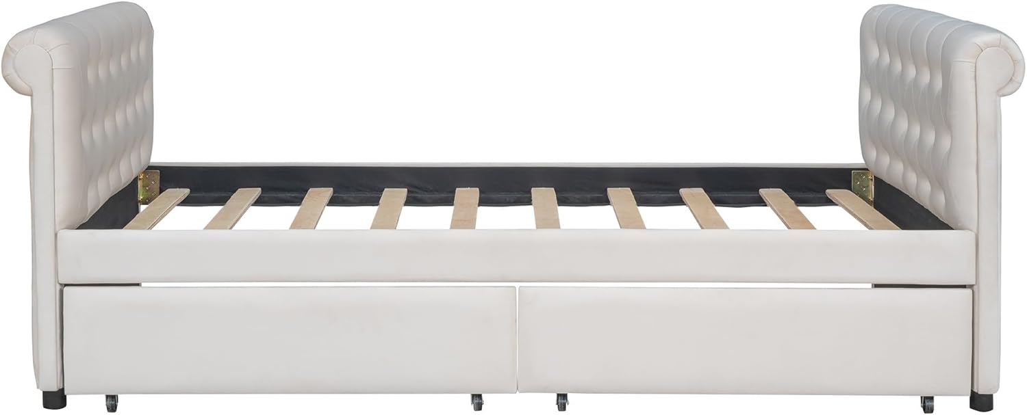Twin Size Upholstered daybed with Trundle, Wood Slat Support, Velvet Fabric Armrests,Bedroom Double Layer Bed Frame, No Box Spring Required