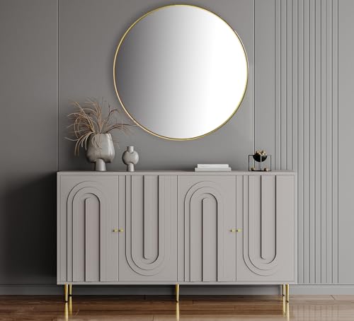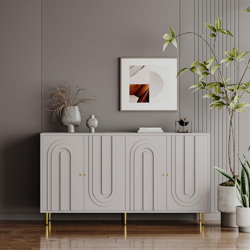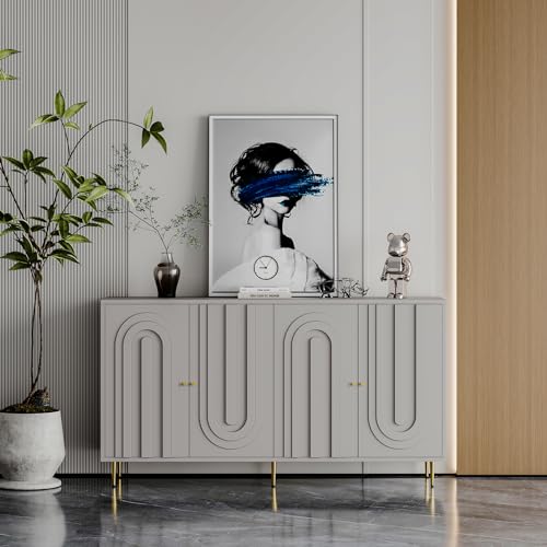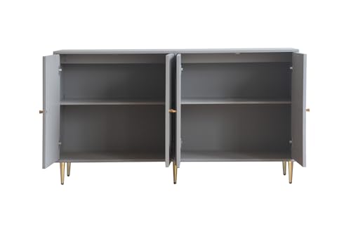 Kitchen Storage Cabinet with 4 Doors,Mid-Century Modern Console Table with Adjustable Shelves Wooden Buffet Sideboard Cabinet for Living Room, Entryway, Hallway, Office, Kitchen and Dining Room,Gray