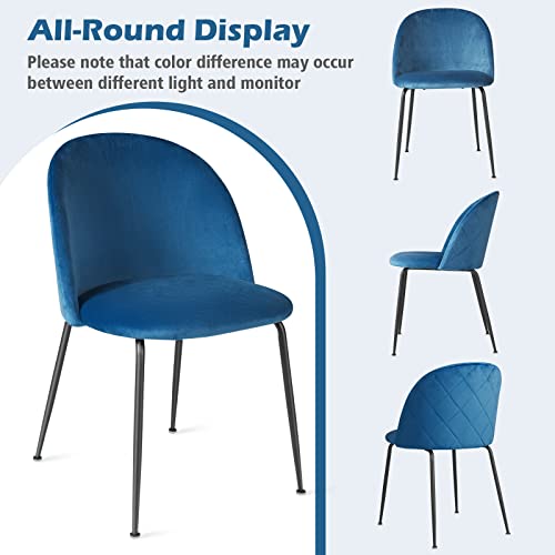Giantex Modern Velvet Dining Chairs Set of 4 - Comfy Vanity Desk Chair for Living Room, Bedroom, Classic Upholstered Dining Room Chairs for Restaurant, Small Space, Teal Blue