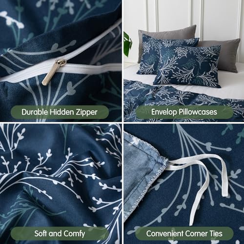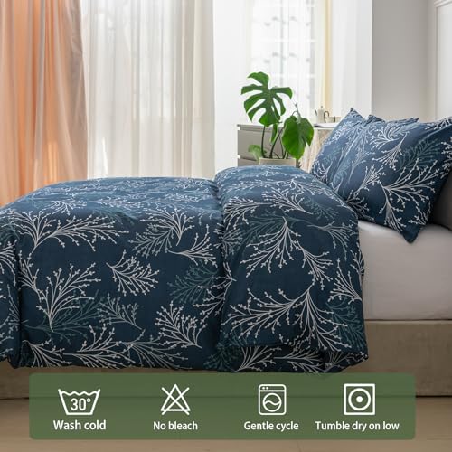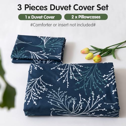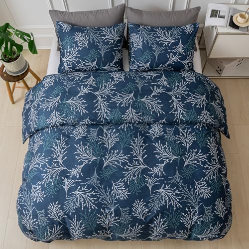 Lekesky Reversible Duvet Cover King Size, Black White Branch Comforter Cover King 3pcs Microfiber Botanical Bedding Set with Zipper Closure Corner Ties