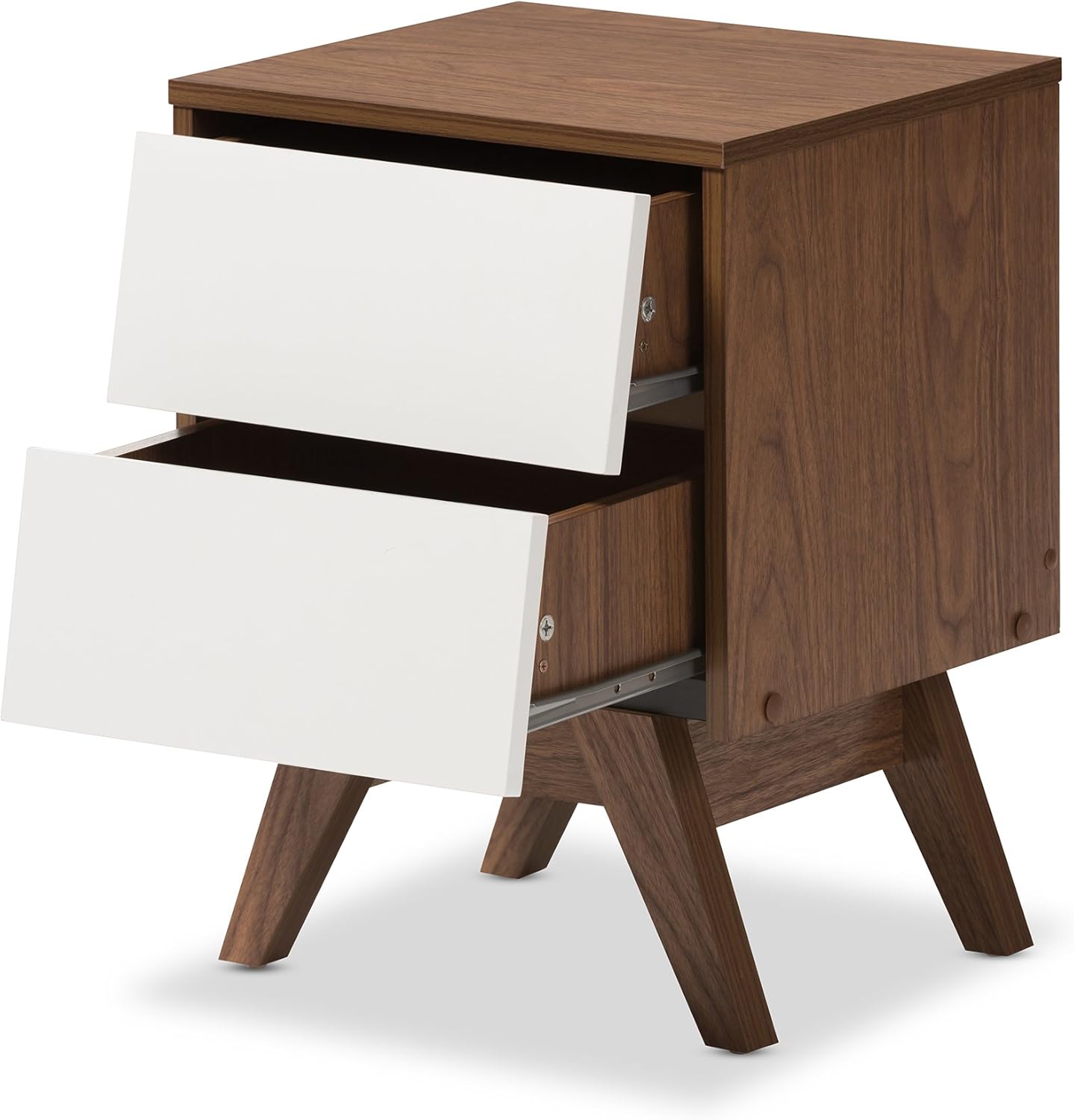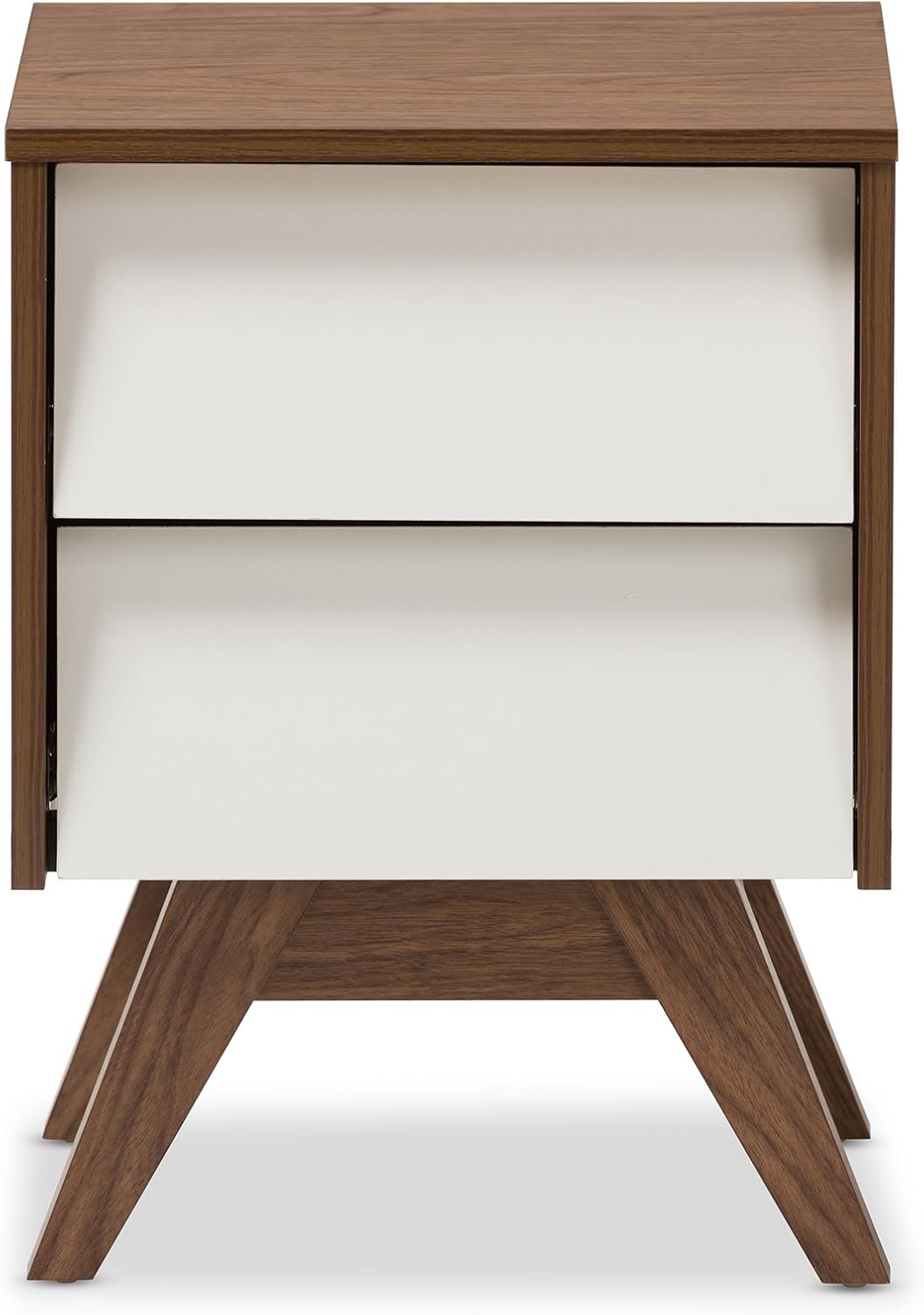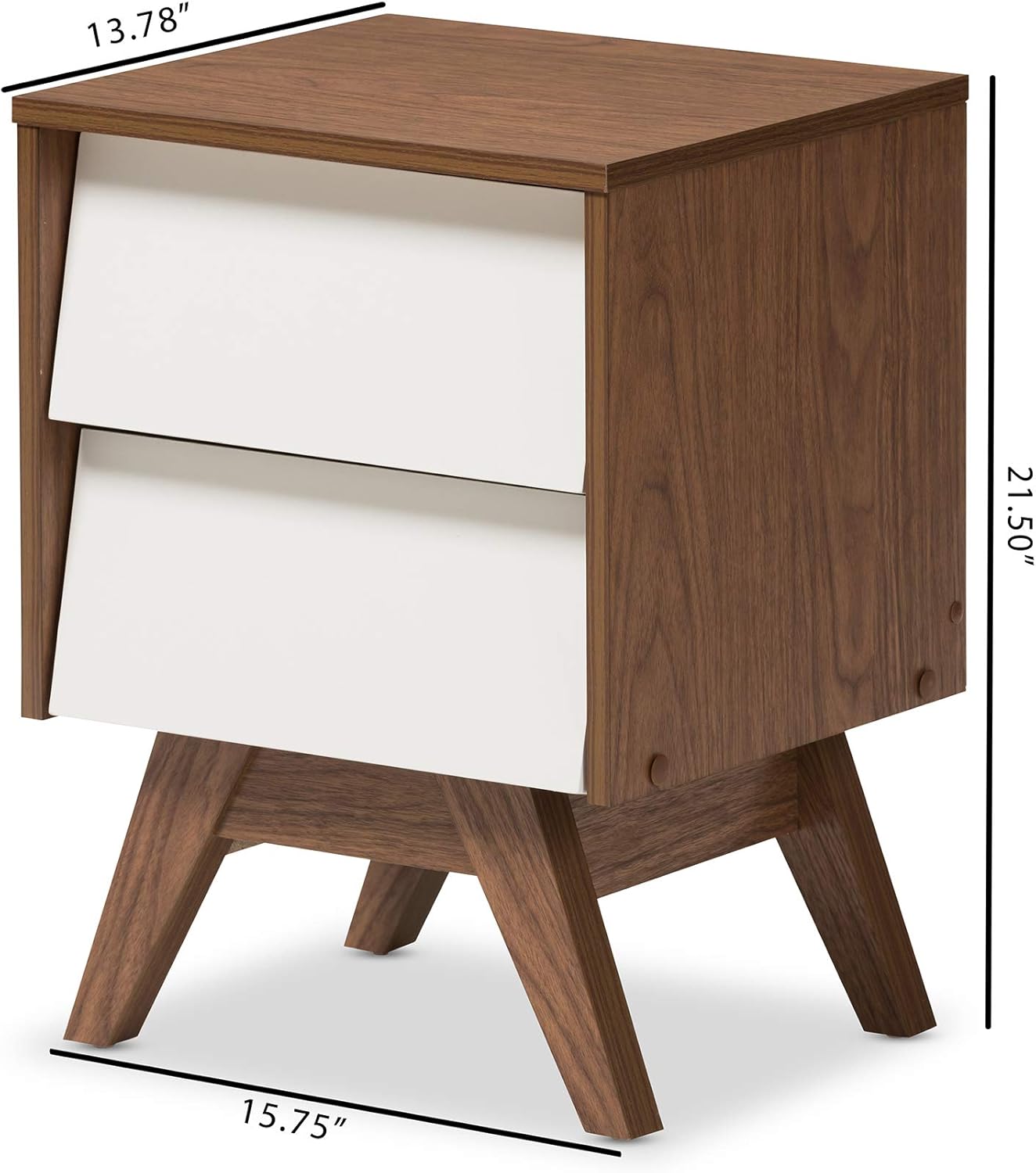 Baxton Studio Nightstands, 2-Drawer Storage Nightstand, White/Walnut Brown