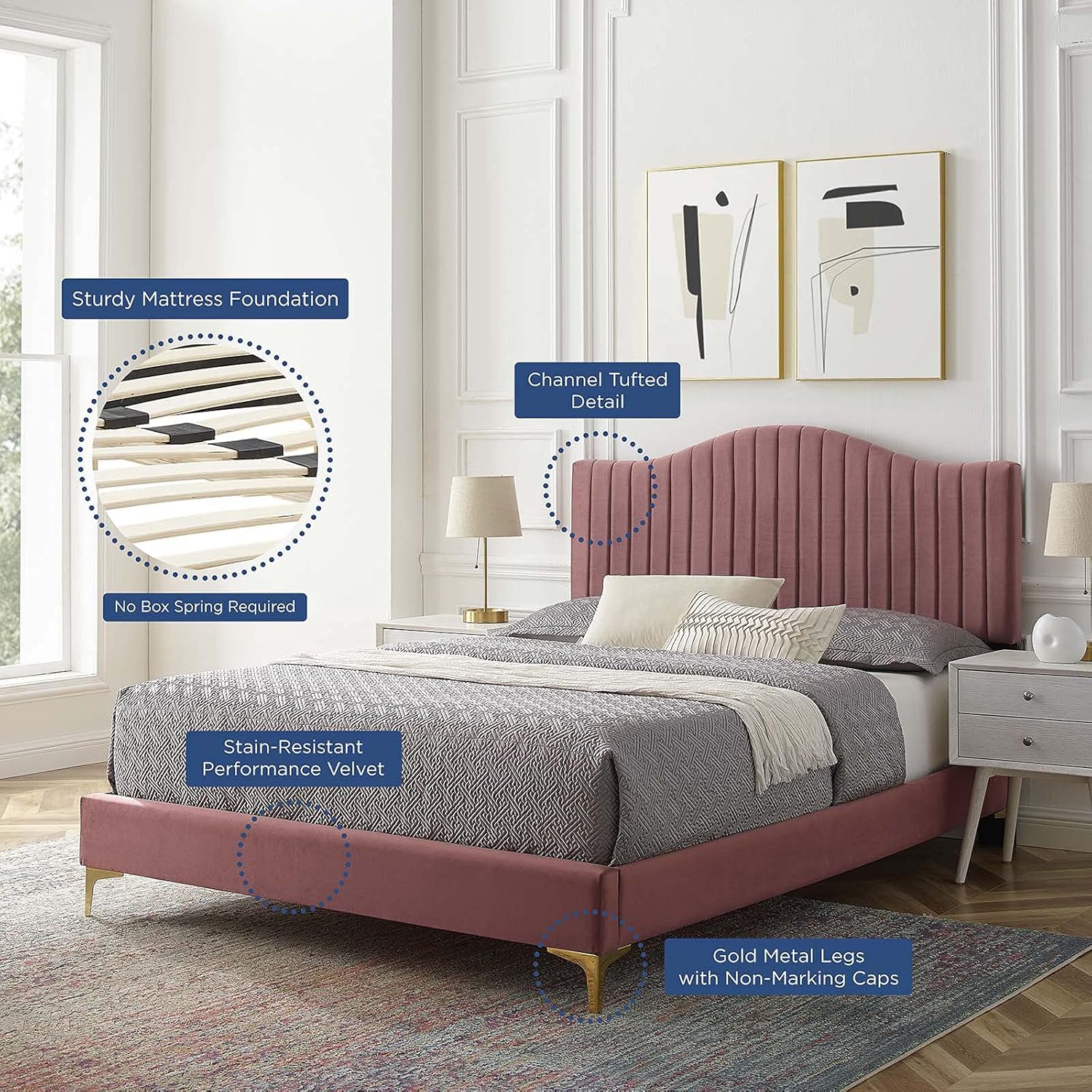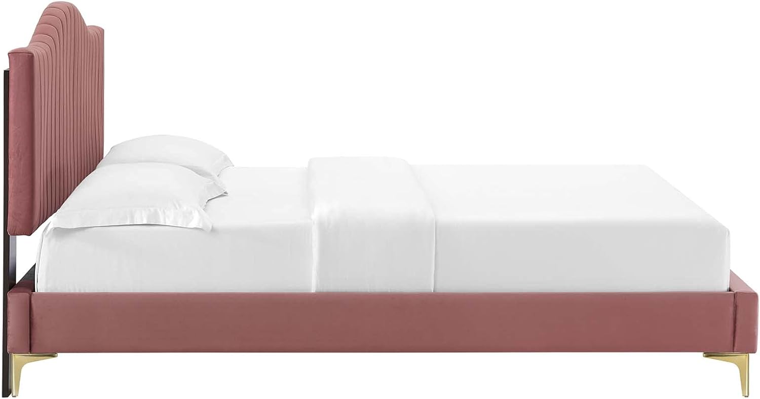 Tufted Platform Bed Frame, King Size, Velvet, Pink, Modern Contemporary, Bedroom Master Guest Suite