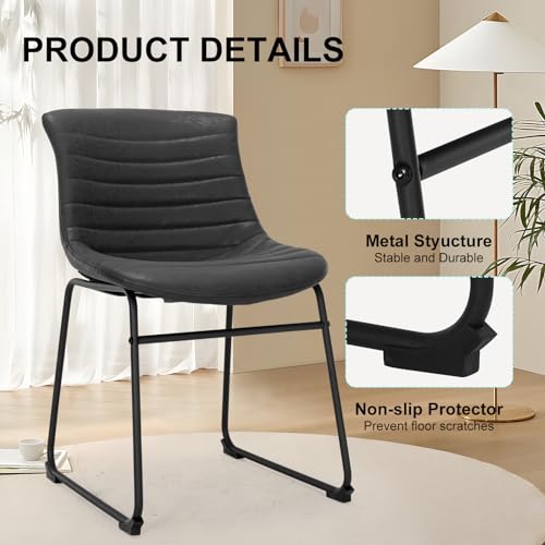 Dining Chair Set of 2, Synthetic Leather Modern Design Bar Chair with Metal Legs for Kitchen Bar Counter Restaurant Dining Room Living Room