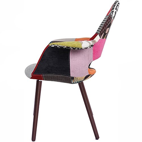 2xhome – Orange Mid Century Modern Upholstered Fabric Organic Accent Living Room Dining Chair Armchair Set With Back Armrest Natural Light Wood Wooden Legs for Kitchen Bedroom