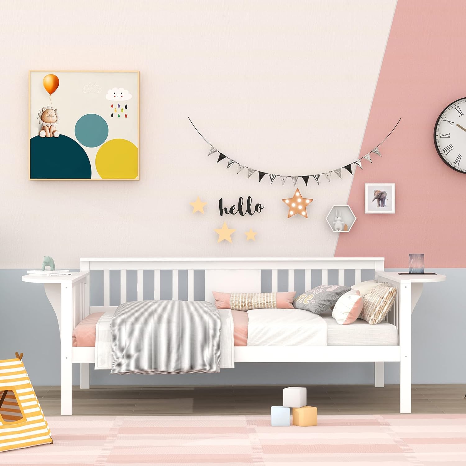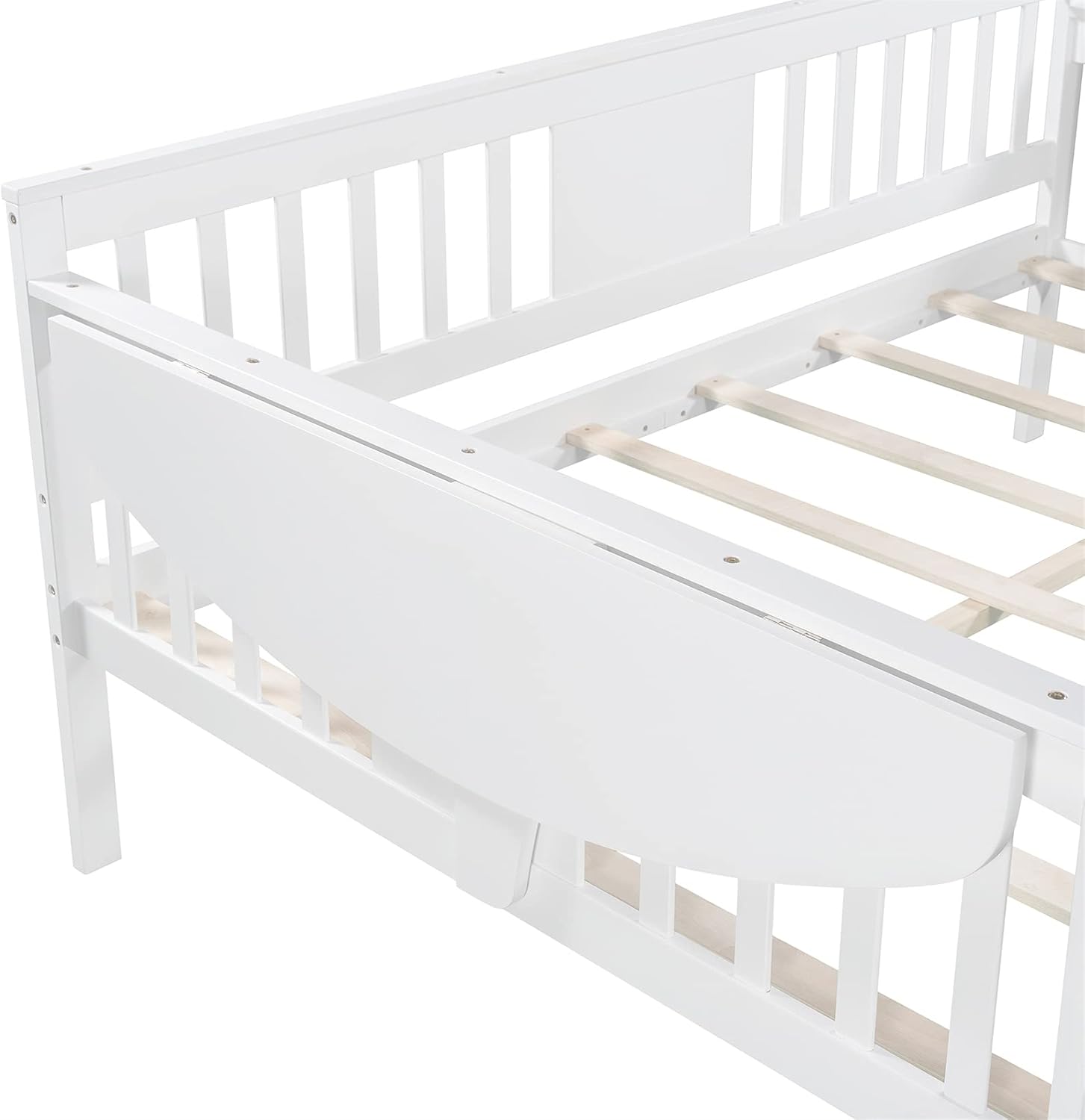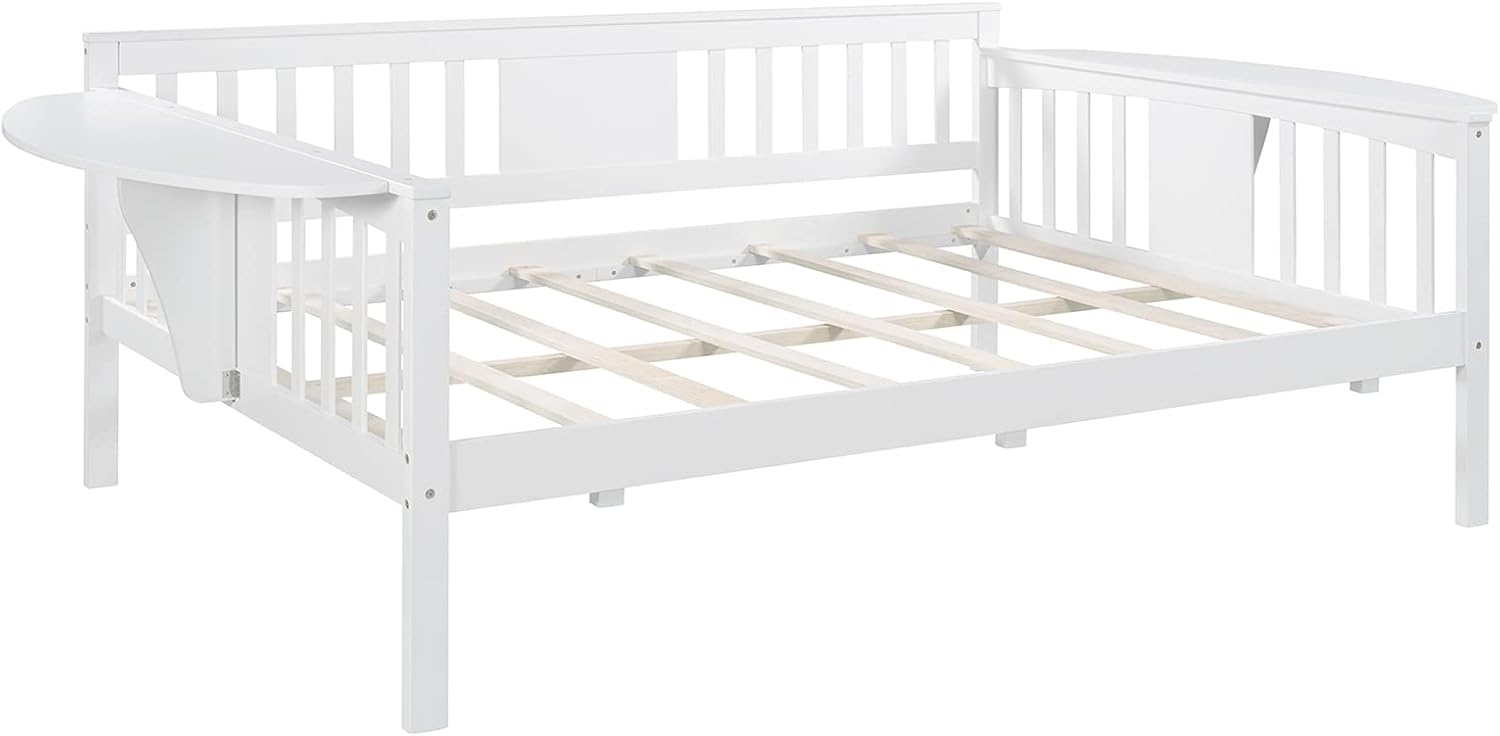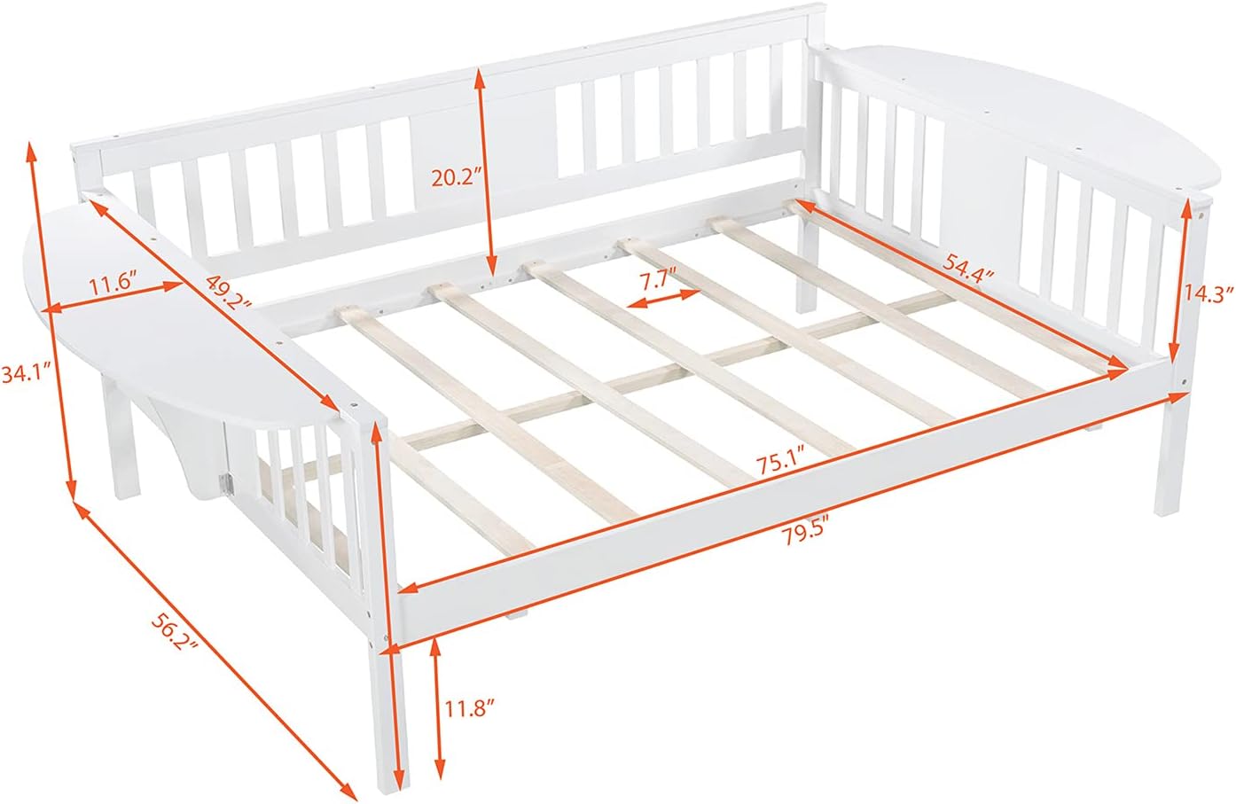 Full Daybed, Wood Day Bed Frame for Kids Adults Full Size Sofa Bed for Bedroom, Living Room, White