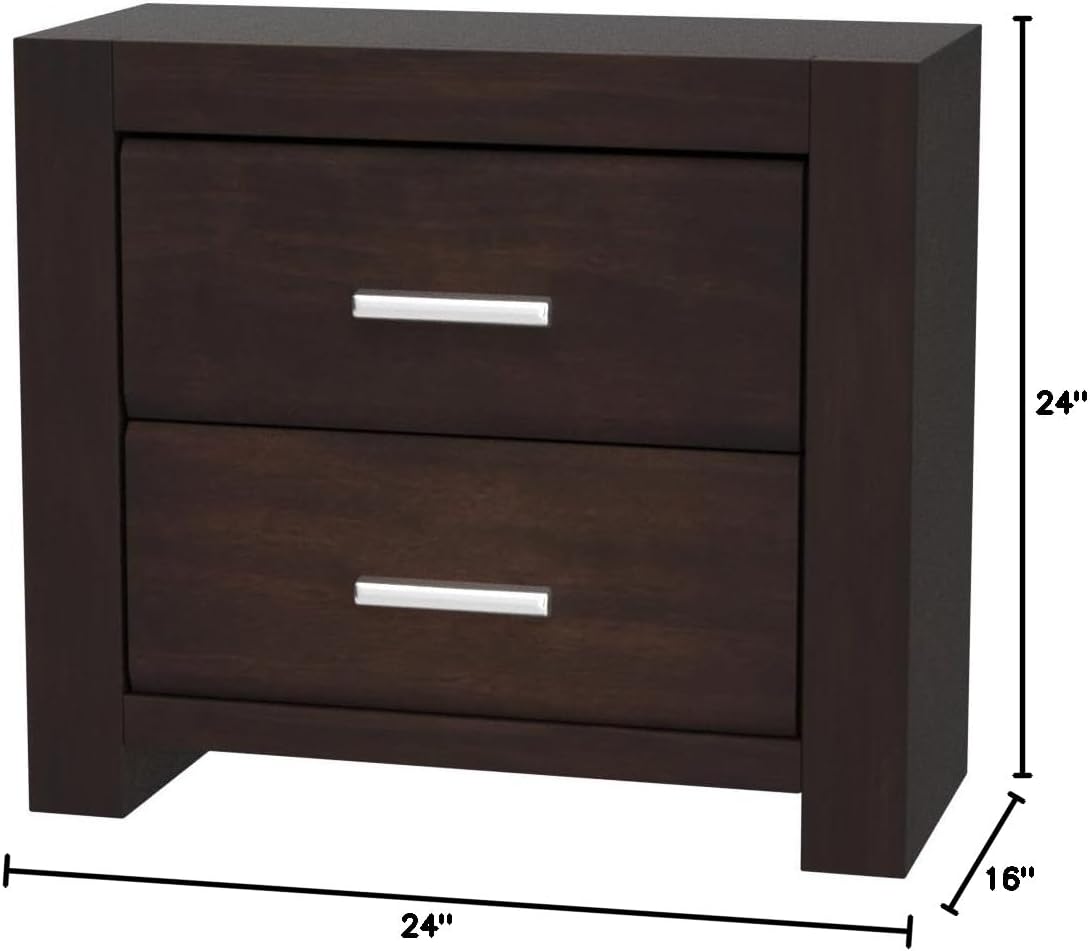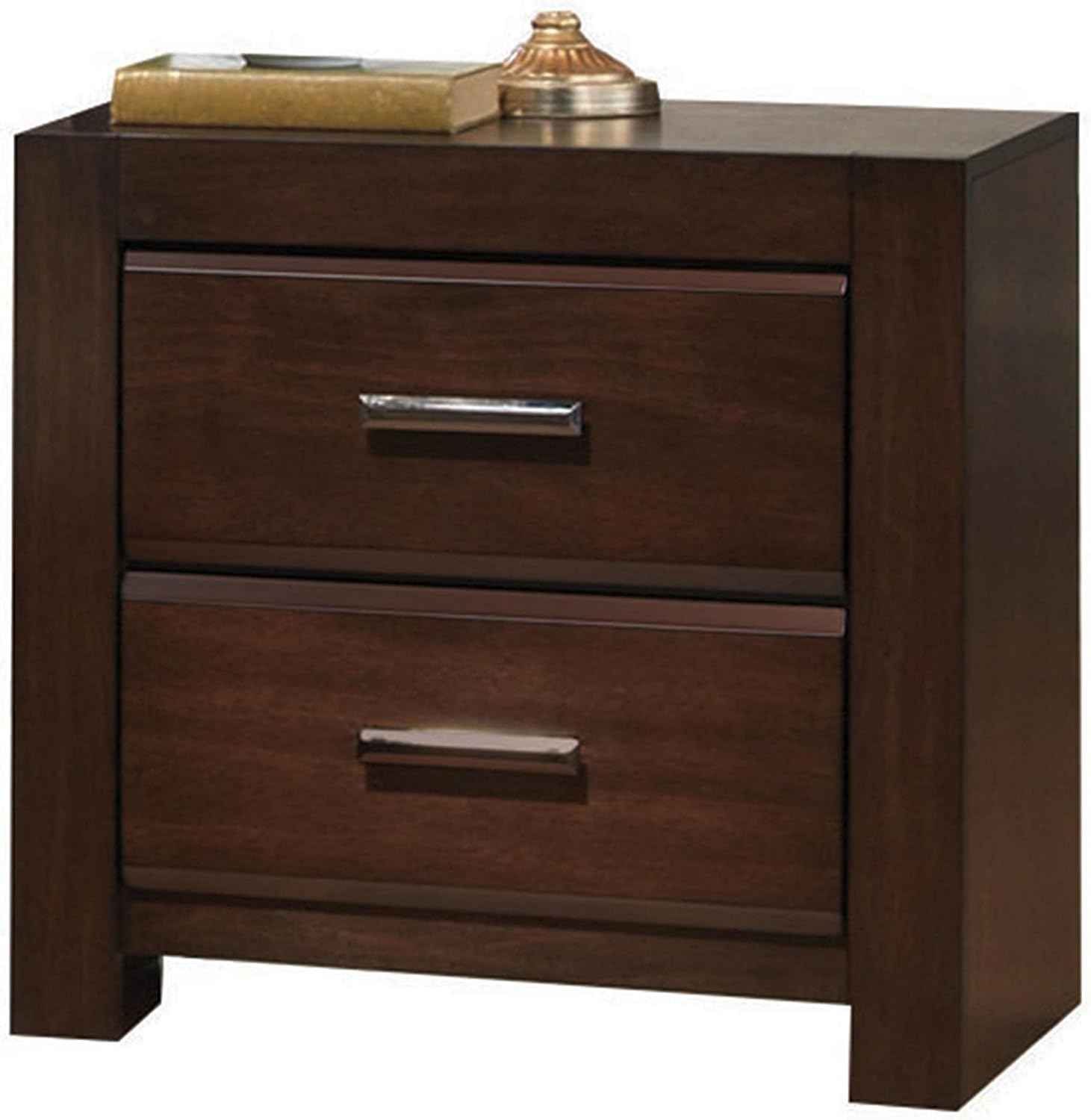 Acme Oberreit Square Wood 2-Drawers Bedroom Nightstand in Walnut