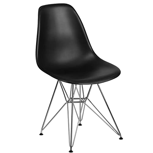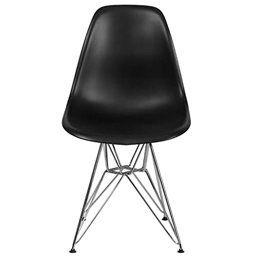 Flash Furniture 2 Pack Elon Series Black Plastic Chair with Chrome Base
