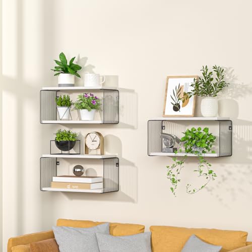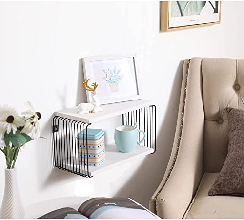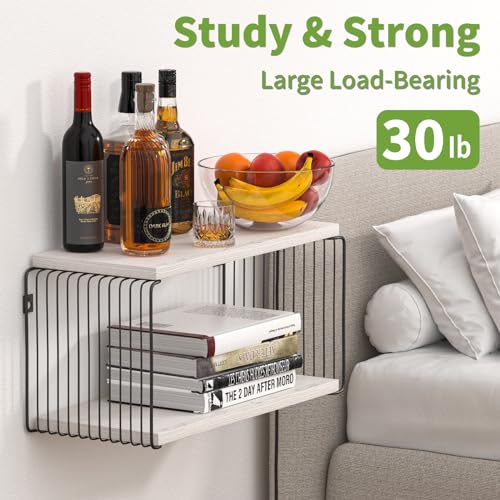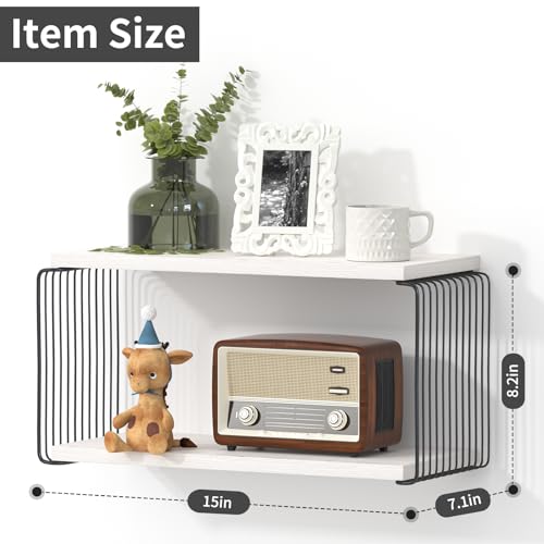 Adowes Floating Nightstand 2 Pack Metal Geometric Modern 2 Tier Nightstand for Wall Minimalist Floating Bedside Tables Bedroom Side Table Bedside Shelf Small Night Stand Weathered Walnut