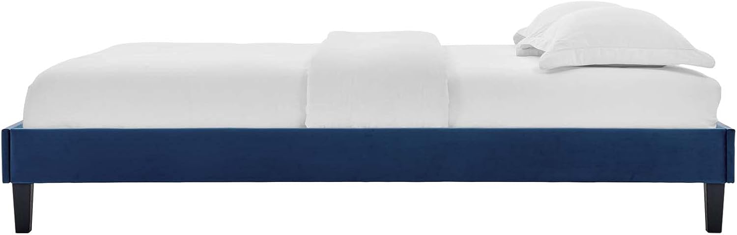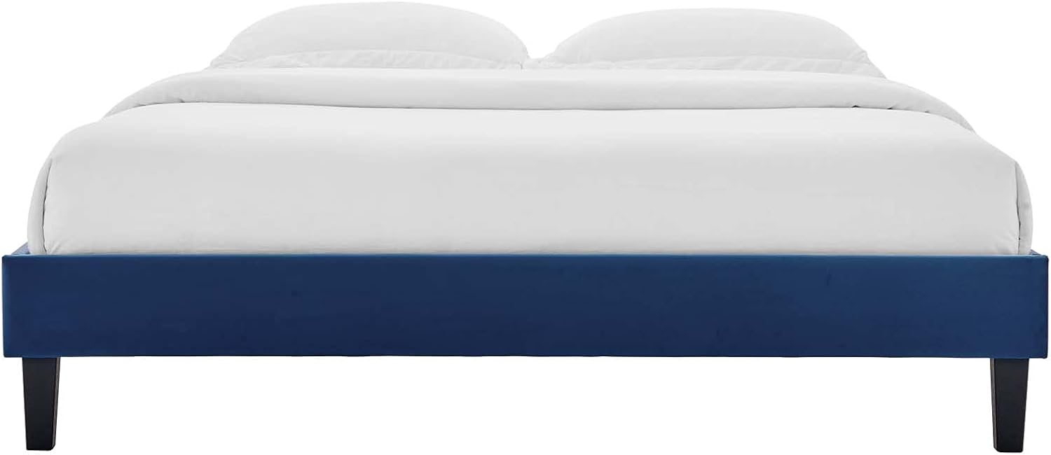 Platform Bed Frame, King Size, Velvet, Blue Navy, Modern Contemporary, Bedroom Master Guest Suite