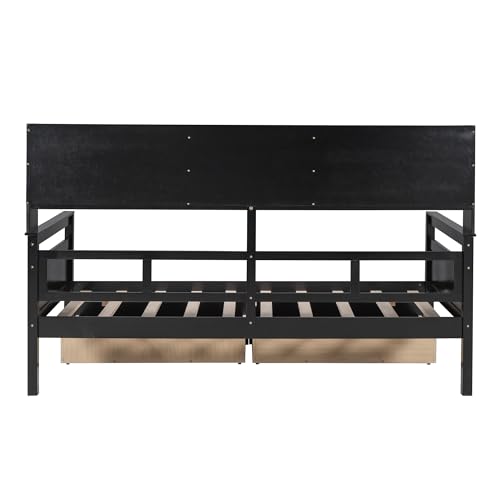 Dolonm Twin Size Daybed with 2 Drawers and Storage Bookshelf, Wooden Day Bed Frame with Bookcases for Kids Teens Adults, Espresso