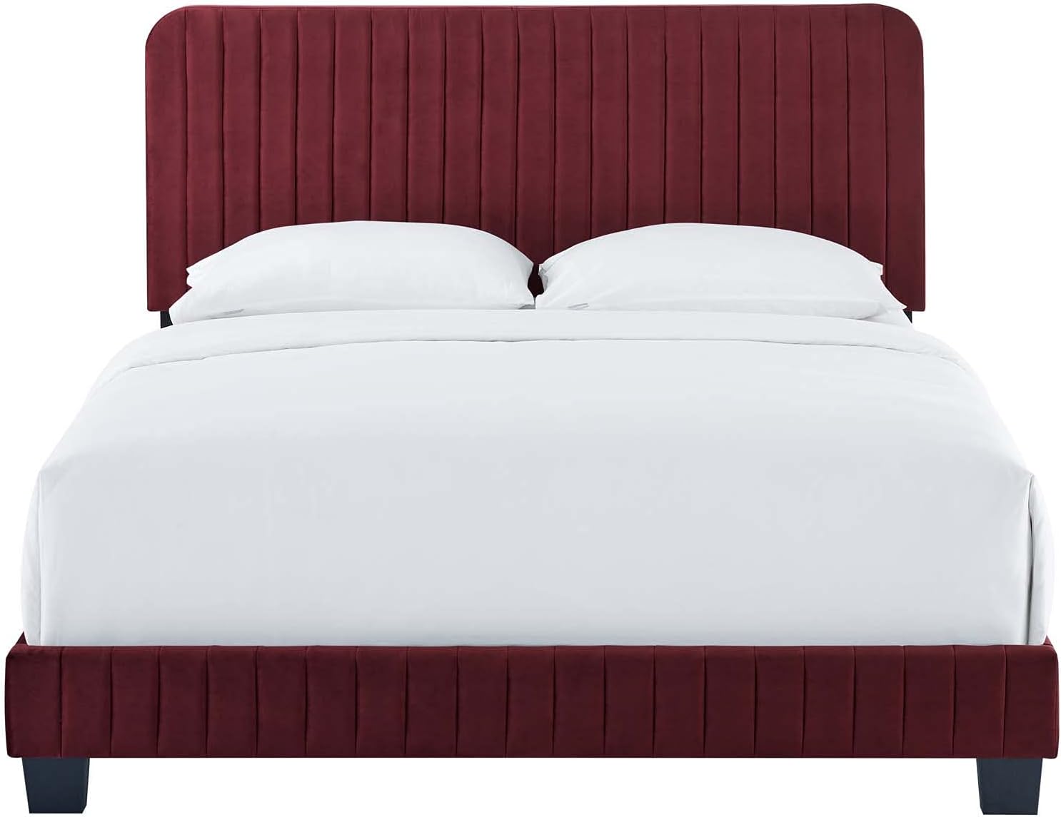 Tufted Platform Bed Frame, King Size, Velvet, Red, Modern Contemporary, Bedroom Master Guest Suite