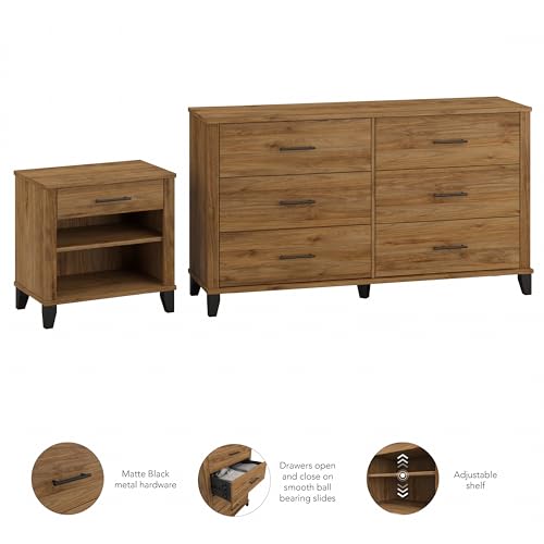 Bush Furniture Somerset Bedroom 6 Drawer Dresser and Nightstand Set, Fresh Walnut