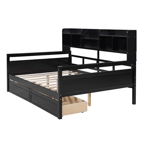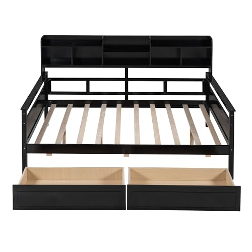 Twin Size Captain Bed with Storage Drawers and Side Bookcase, Versatile Wooden Daybed for Kids Teens Adults Dorm Bedroom Guest Room or Home, Espresso