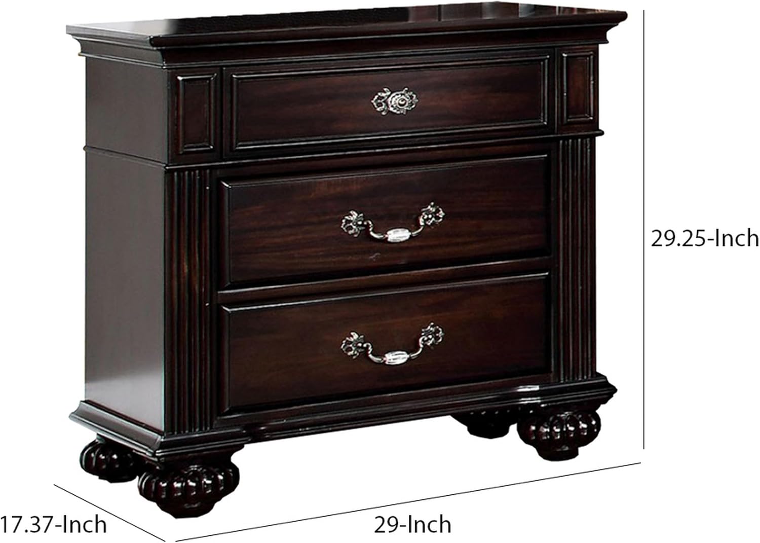 Benzara Syracuse Traditional Nightstand, Dark Walnut