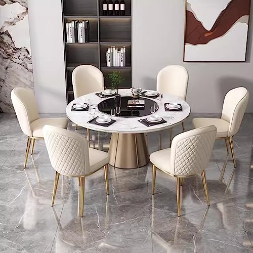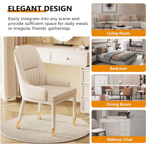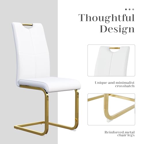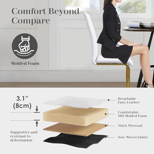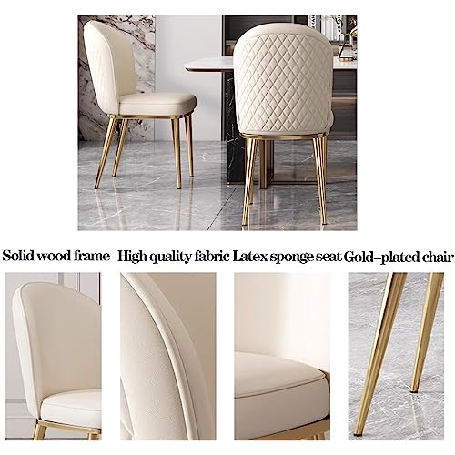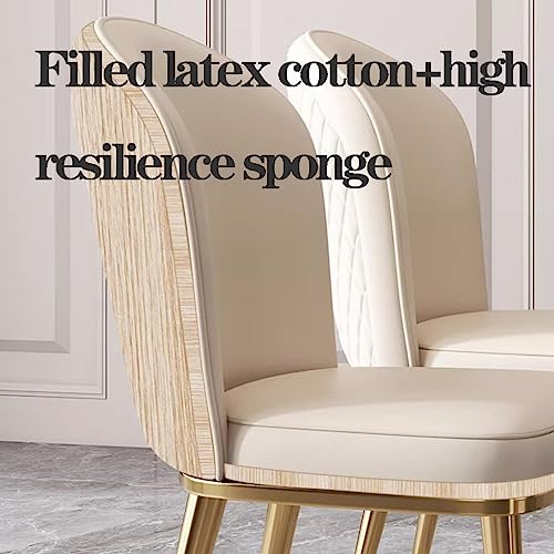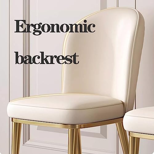 Dining Chairs Vintage Leather Mid-Century Kitchen Counter Chairs Lounge Leisure Living Room Corner Chairs Upholstered Side Chair with Gold Metal Legs and Backrests/White