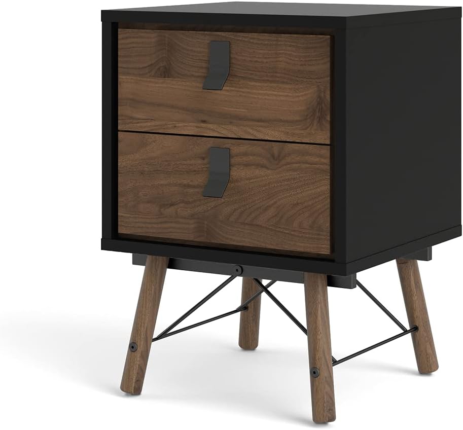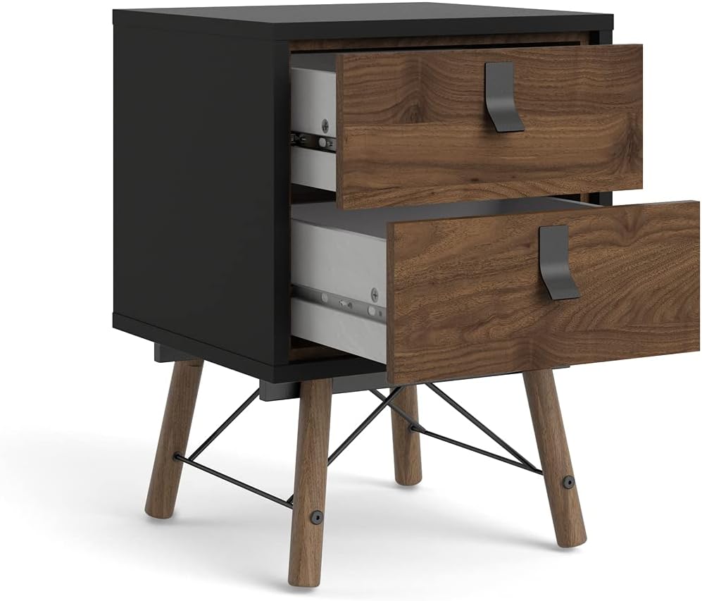 Tvilum, Black Matte and Walnut Ry 2 Drawer Nightstand