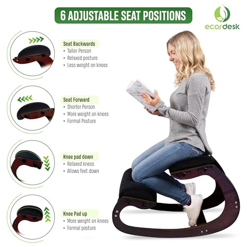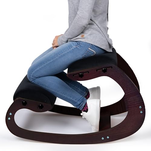 Ergonomic Kneeling Chair - Natural Latex Foam - Posture Chair for Desk with Adjustable Seat & Knee Pad, Rocking Knee Chair for Upright Posture (Walnut)
