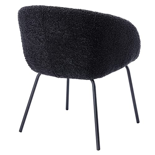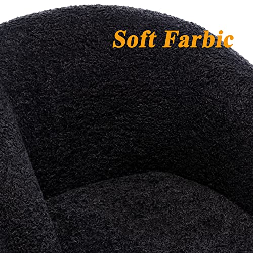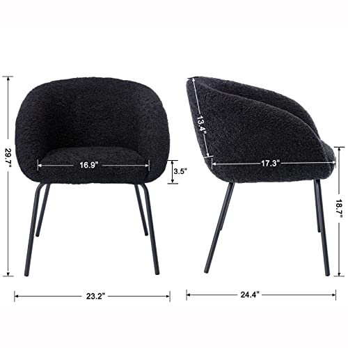 DUOMAY Modern Swivel Barrel Dining Chair Set of 6, Faux Fur Upholstered Accent Side Chair Makeup Vanity Chair with Back, Desk Chair No Wheels with Black Metal Legs for Living Dining Room, White