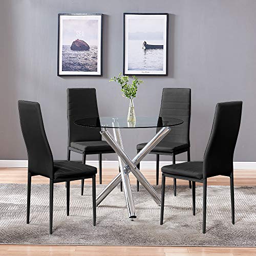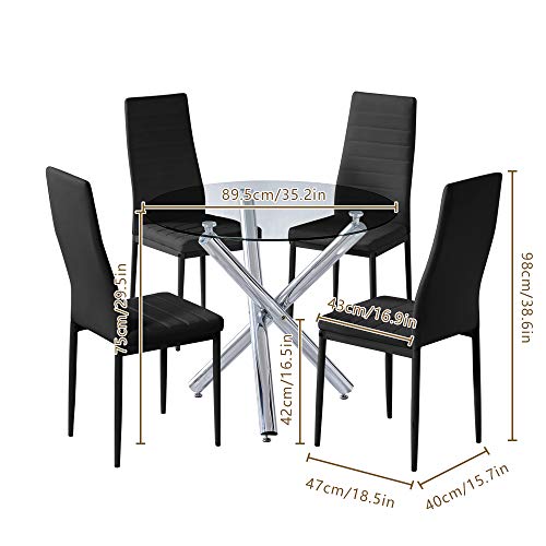 Dining Table with Chairs, 5 PCS Glass Dining Kitchen Table Set Modern Tempered Glass Top Table and PU Leather Chairs with 4 Chairs Dining Room Furniture White