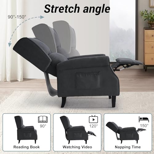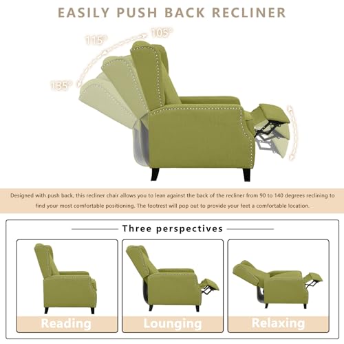 Wingback Recliner Chair, Modern Push Back Accent Arm Chair with Nailhead & Curved Arms, Tufted Upholstered Comfy Linen Manual Reclining Lounge Sofa Chair Living Room, Bedroom (Gray, Set of 2)