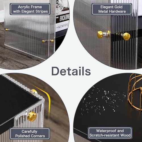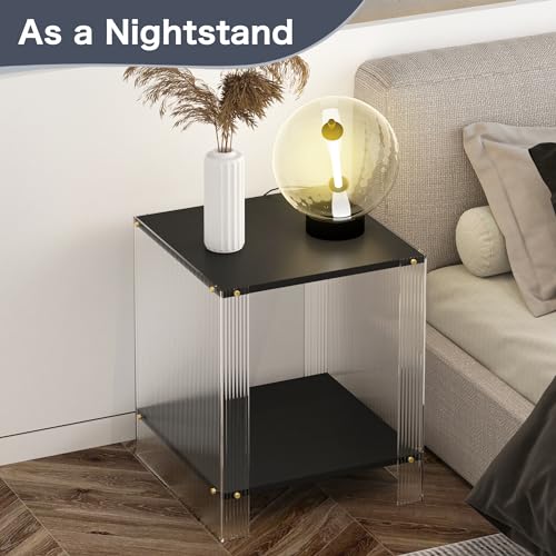 Black Side Table Modern, Acrylic Side Tables, 2-Tier Square End Table for Living Room, Bedroom Nightstand