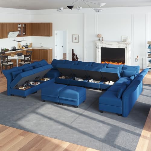 LLappuil Sectional Sofa Convertible U Shaped High Back Modular Couch with Storage Wide Chaise 10 Seat Comfy Modular Sectional Couch Scratch Resistant Easy Clean for Living Room, Brown