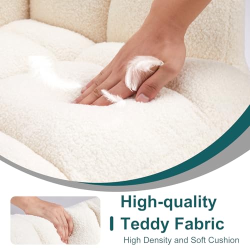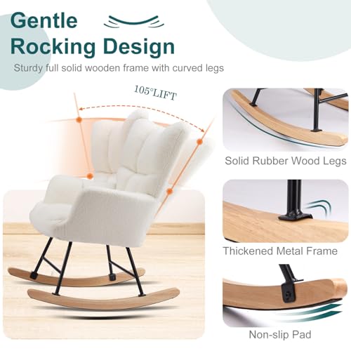 Sturdy Rocking Chair Nursery Upholstered Glider Rocker with High Backrest, Comfortable Recliner for Living Room Bedroom Office, Teddy White