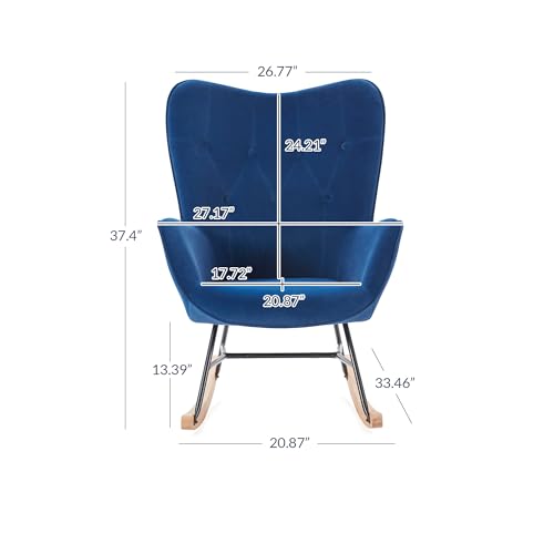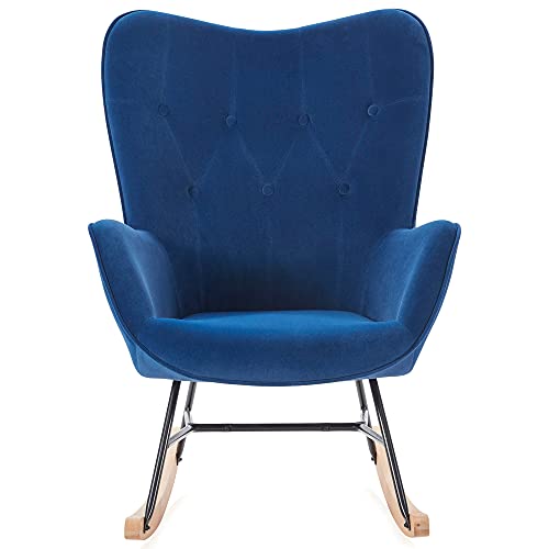 BELLEZE Mid Century Modern Rocking Chair, Upholstered Velvet Armchair with Tufted Buttons, Vintage Comfy Glider Chair for Living Room, Bedroom, Nursery - Finnegan (Blue)